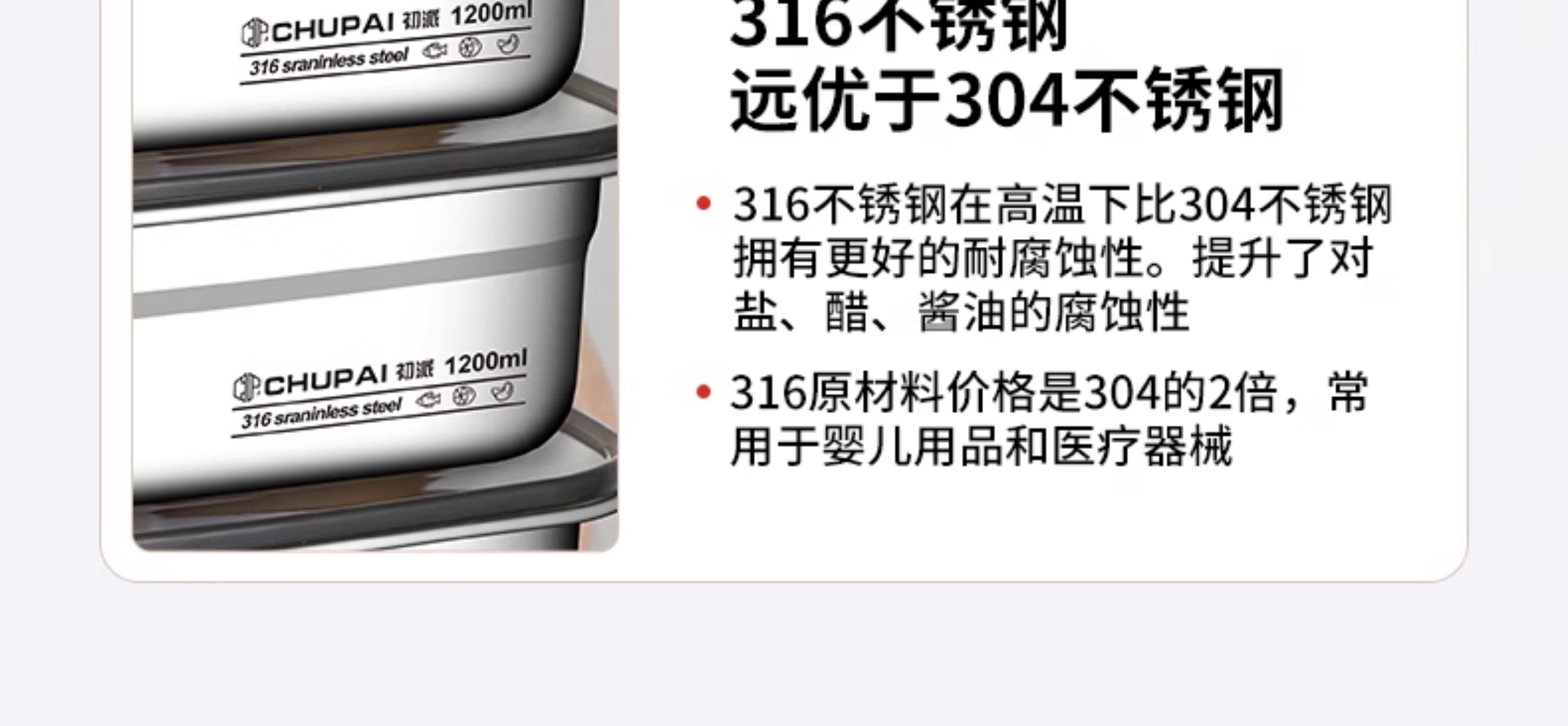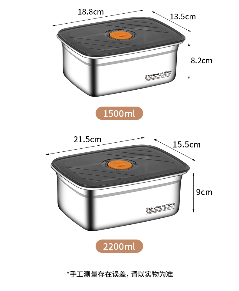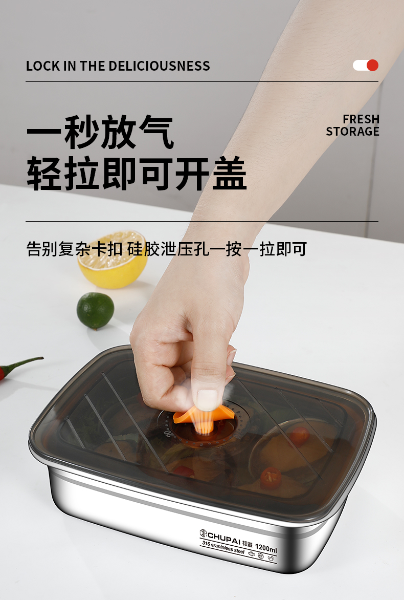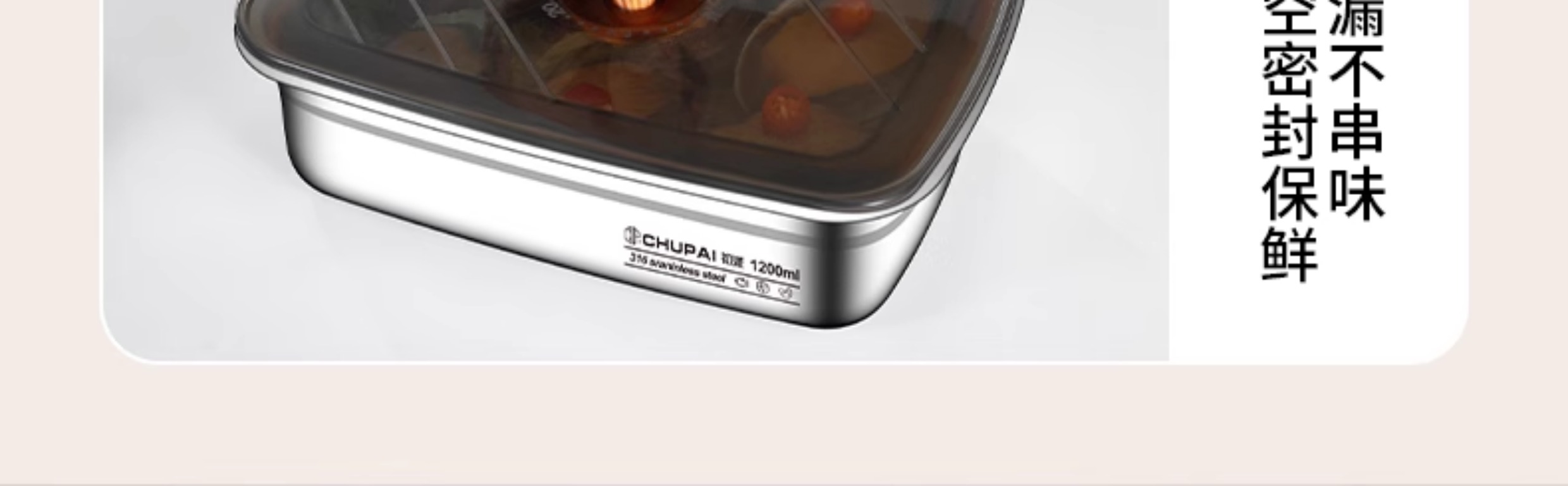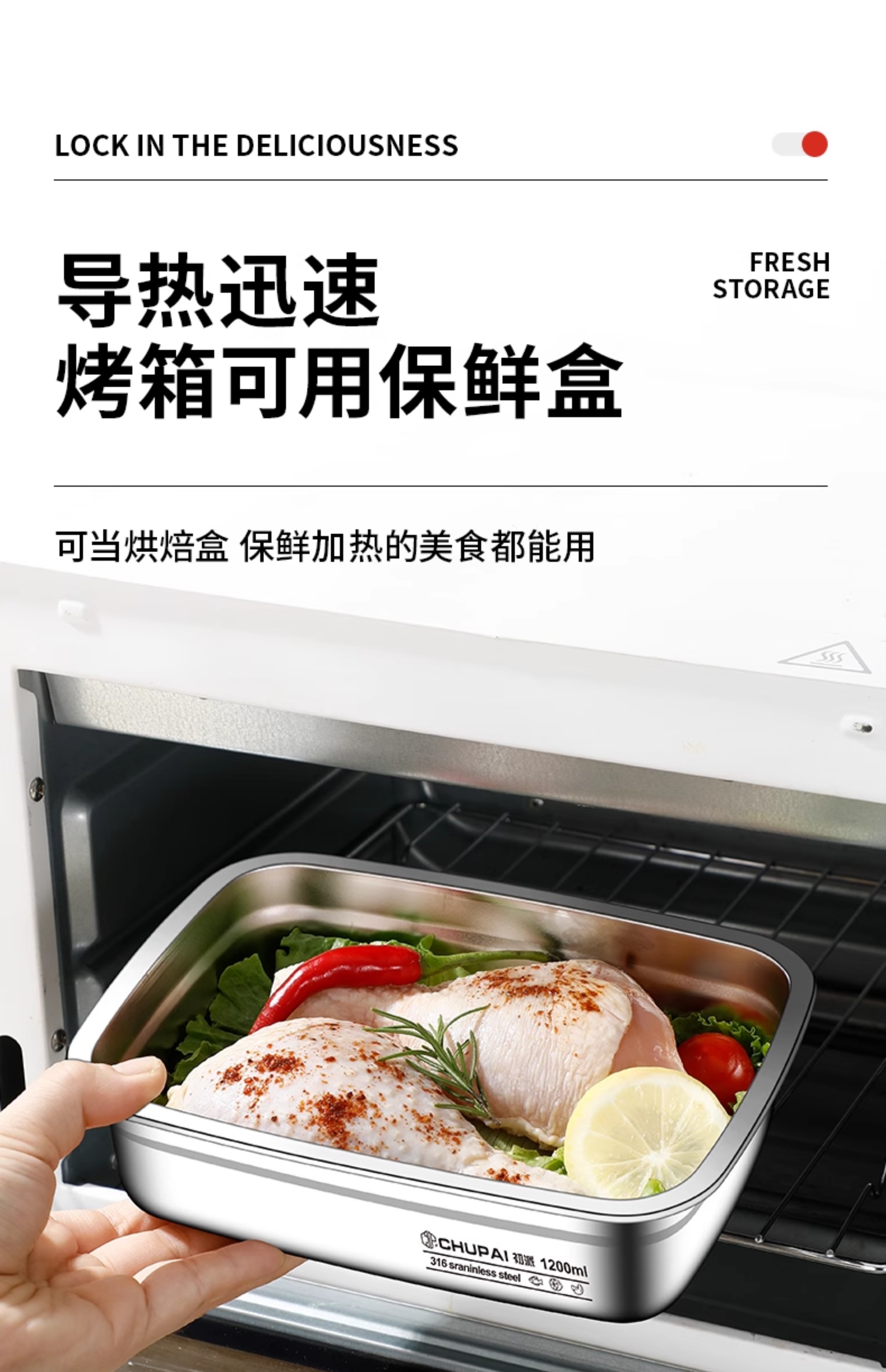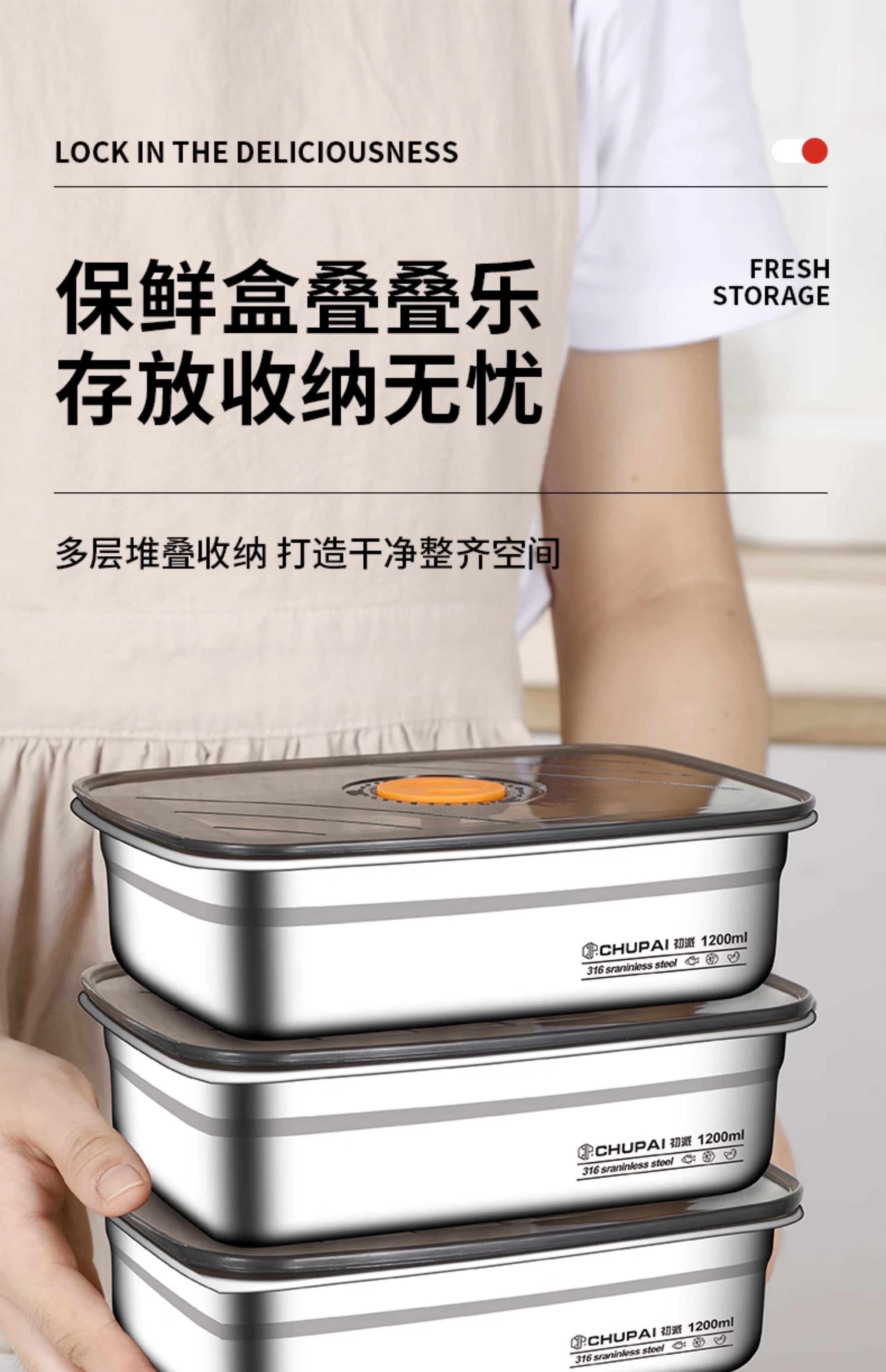 カスタマイズ可能な蓋付き食品グレード弁当箱、密閉容器、長方形ボックス、316ステンレス製鮮度保持容器