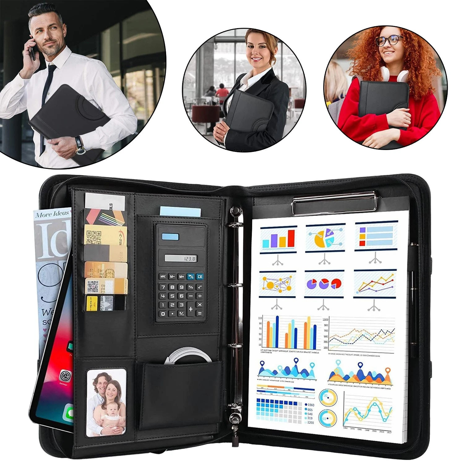 スポットジッパー手提げブリーフケースa4オフィスマネージャーバインダークリップビジネス多機能puファイル卸売り