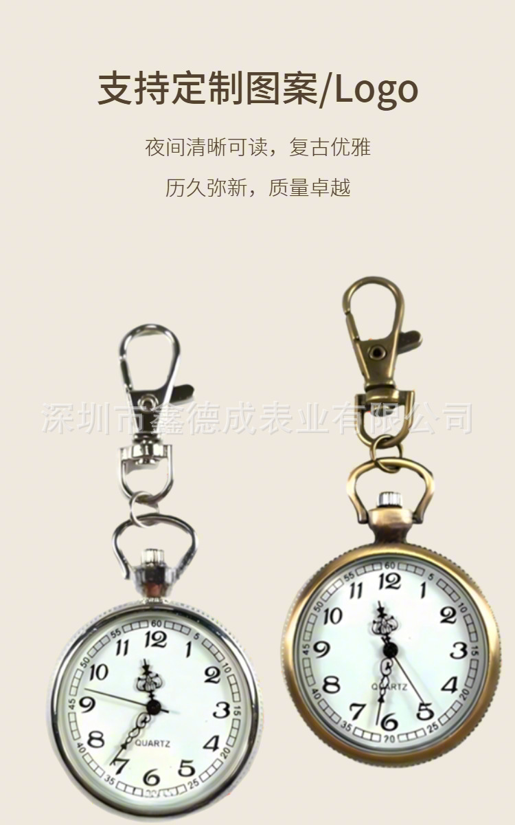 新型キーホルダー腕時計、夜光レトロナースウォッチ、胸掛け時計、クリエイティブな学生・公務員試験用腕時計