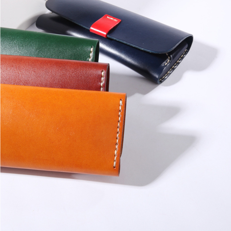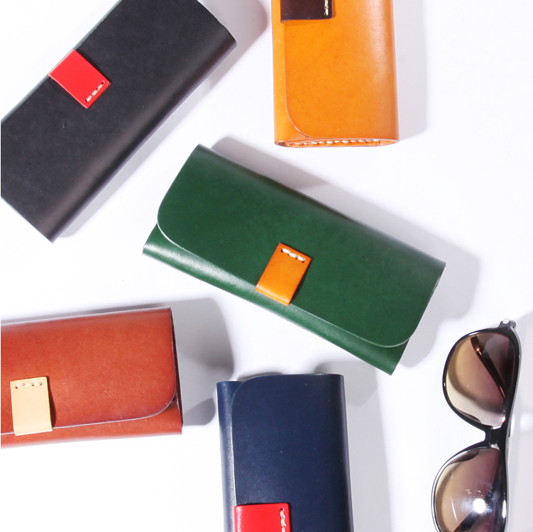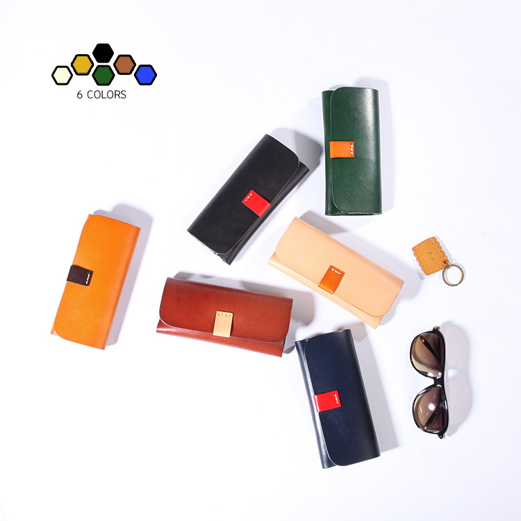 25 新しい本革近視メガネバッグコントラストカラー第一層牛革植物なめし革超薄型メガネケースメーカーが在庫あり