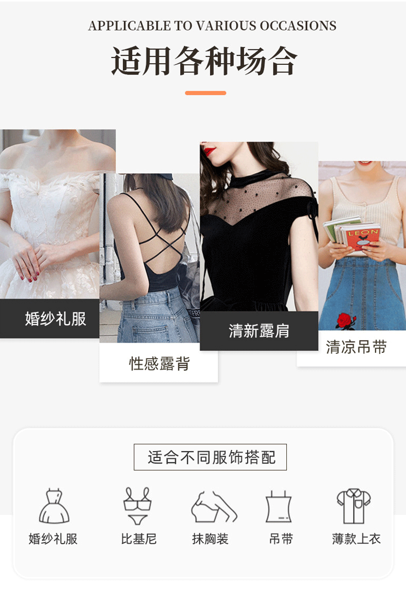 国境を越えた肩ベルトが集まっていない通気性のある見えない胸の水着とウェディングドレスのシリコン胸の滑り止め胸に乳房を貼る
