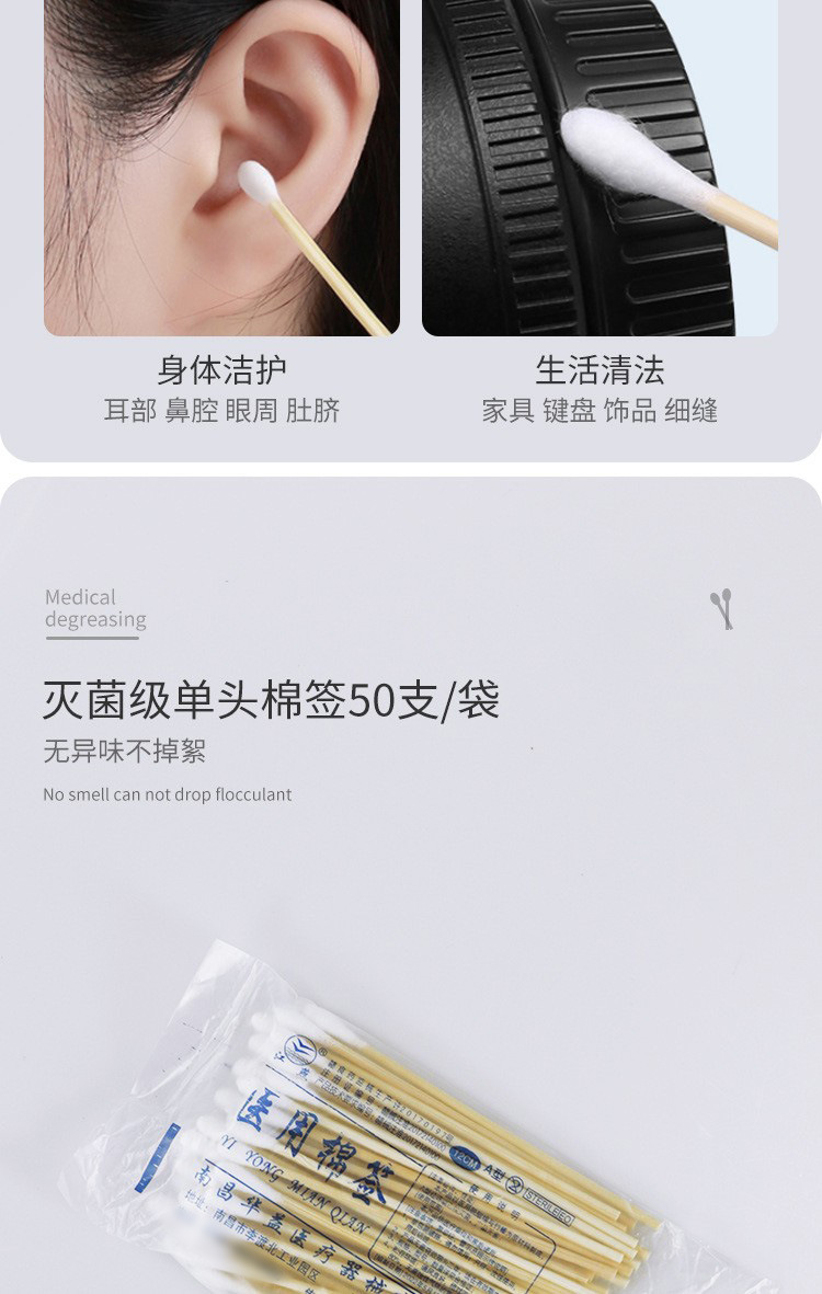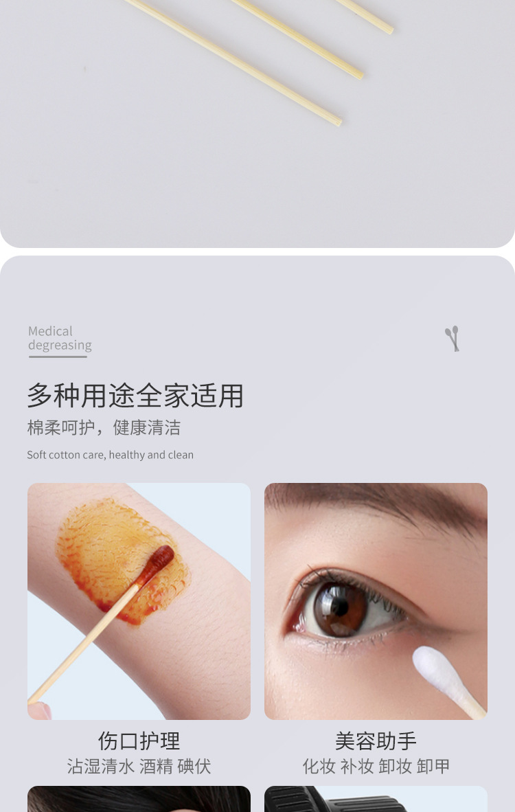 1000本の綿棒使い捨て無菌綿棒12cmの頭の木綿棒赤ちゃん脱脂綿棒10cm