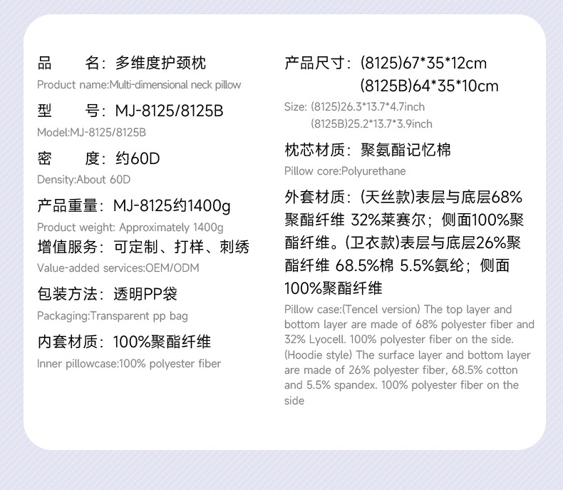 8125 頸椎枕 (サイズはカラー写真に記載されています)