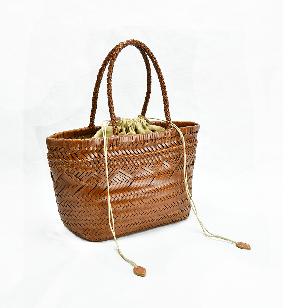 Dragon diffusionフレンチニット野菜バスケット本革手作りレディースハンドバッグネットレッド人気