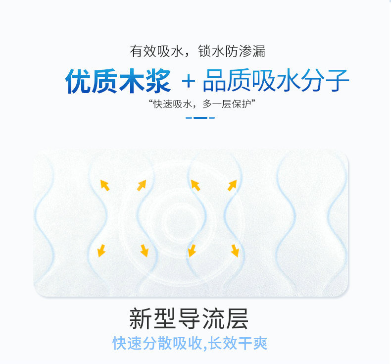 表面不織布、吸水紙、綿状木材パルプ、吸水性ポリマー、PE漏れ防止底フィルム