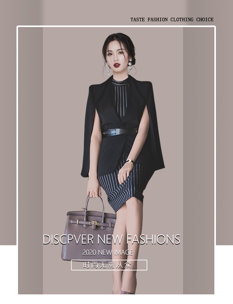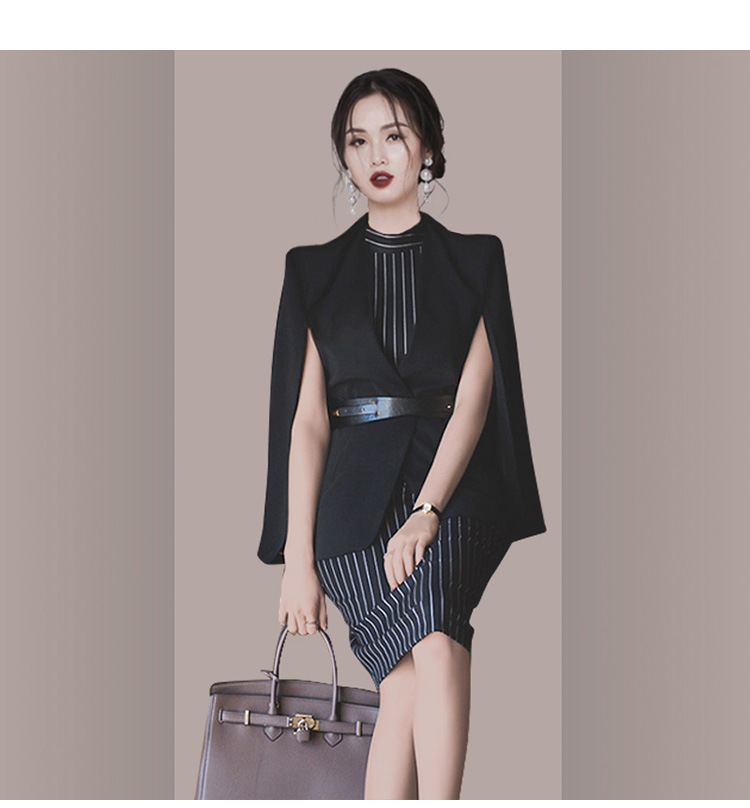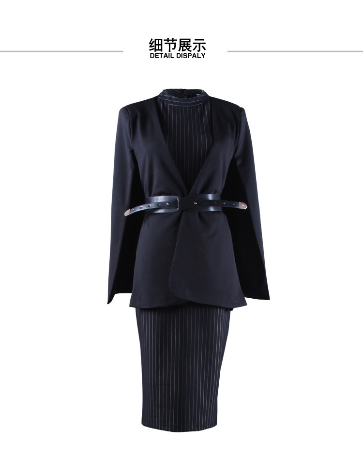 クロスボーダー婦人服セレブツーピース OL 気質プロフェッショナルドレス 2023 新しいツーピースファッションマントセット