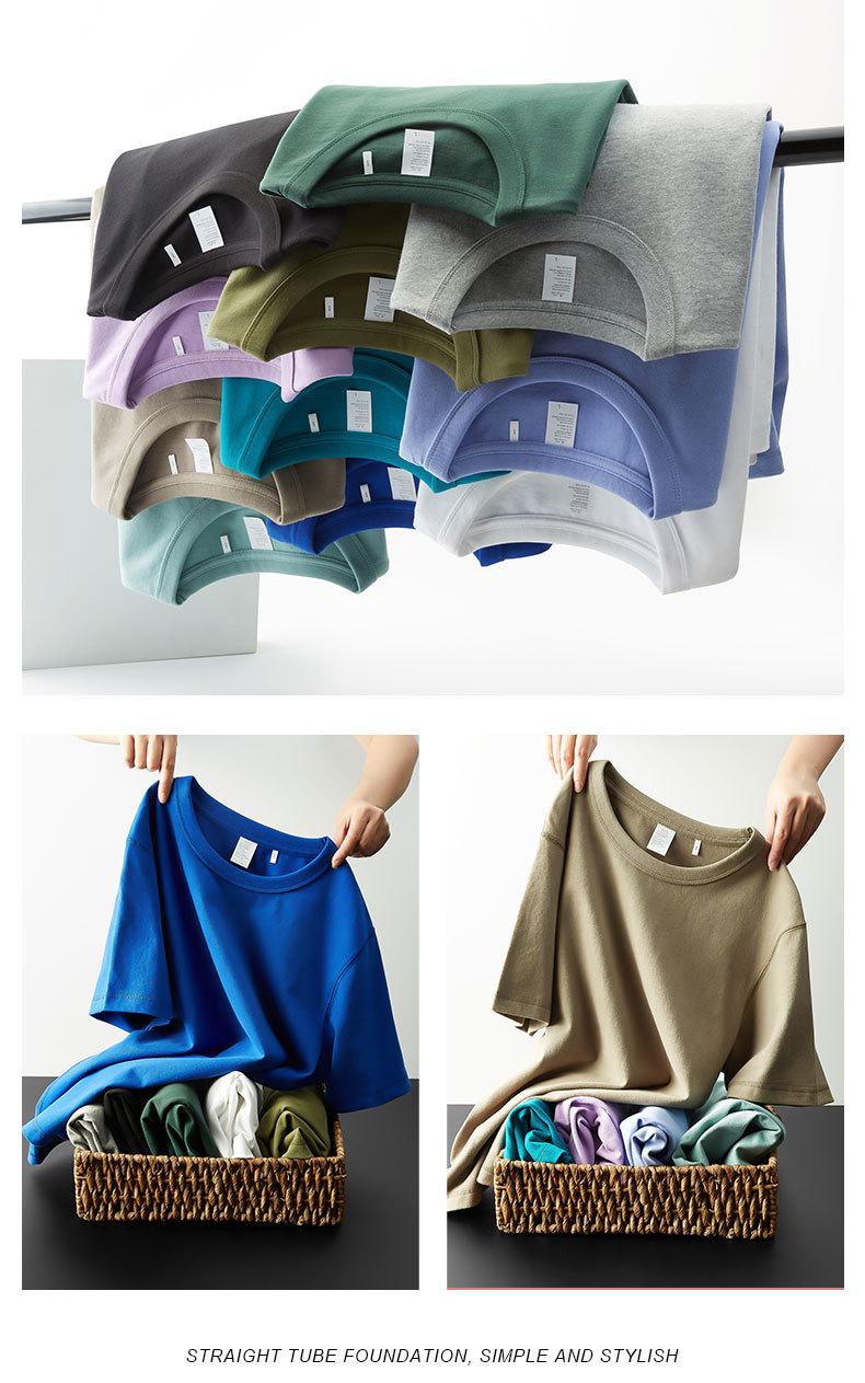 300gコットンTシャツ、白、半袖、丸首、秋冬、メンズ、トップス、ベースレイヤー、純綿、トレンドブランド、日本風、レトロ