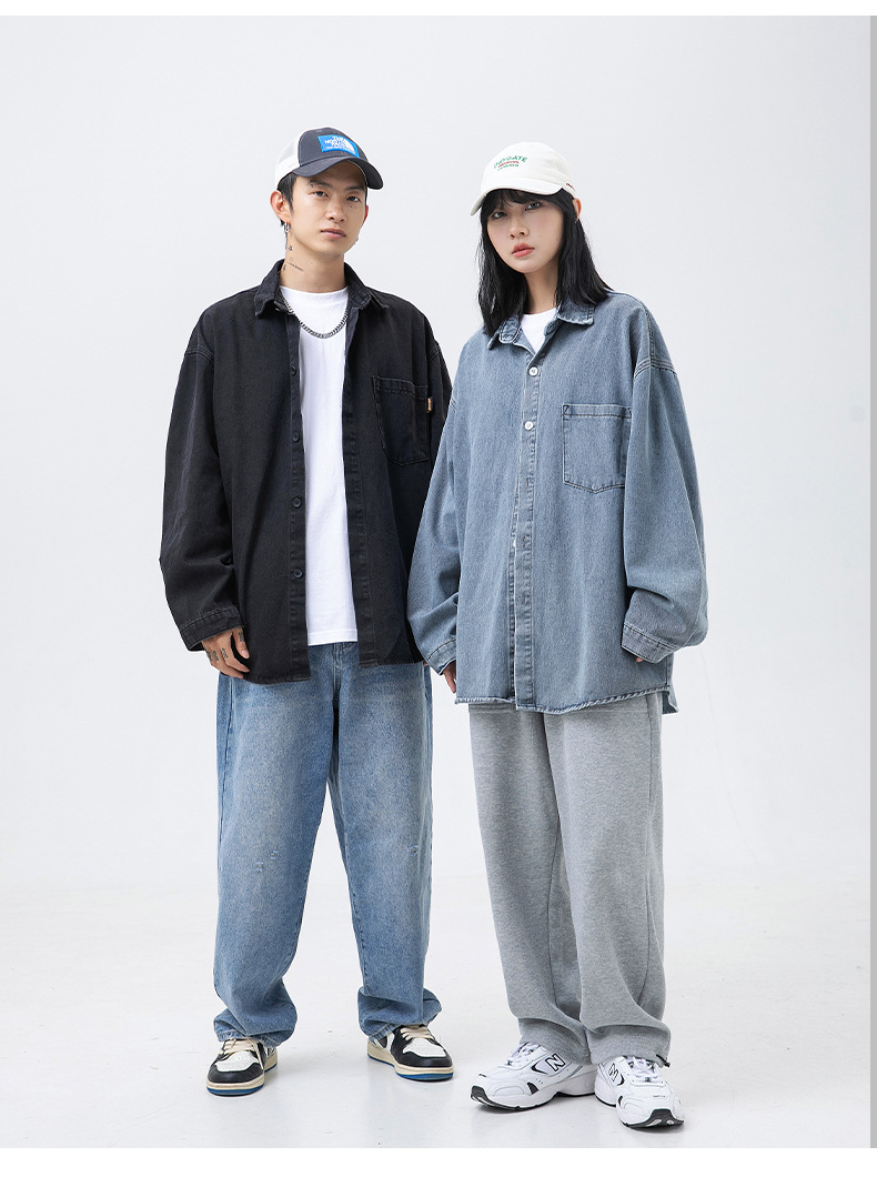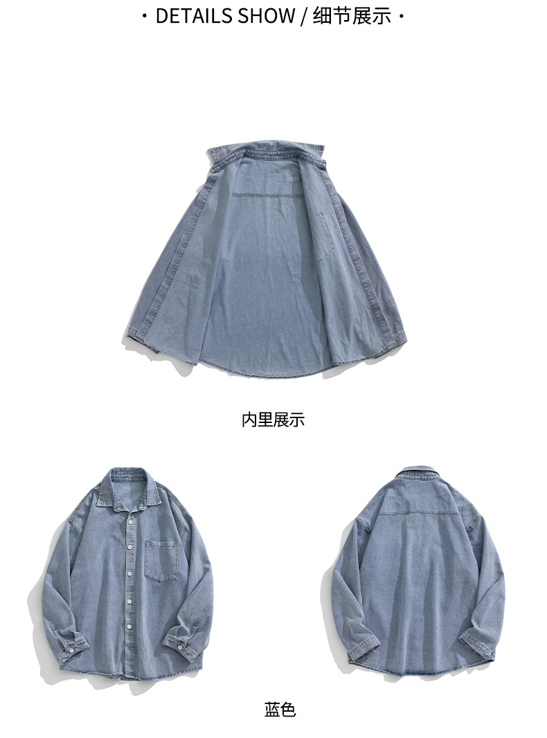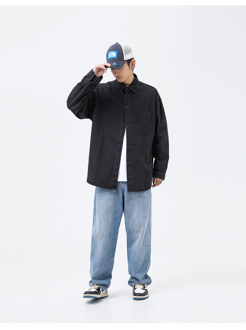 Hanlu 日本のメンズ春デニム長袖シャツメンズルーズベーシック多用途カジュアルウォッシュシャツジャケット