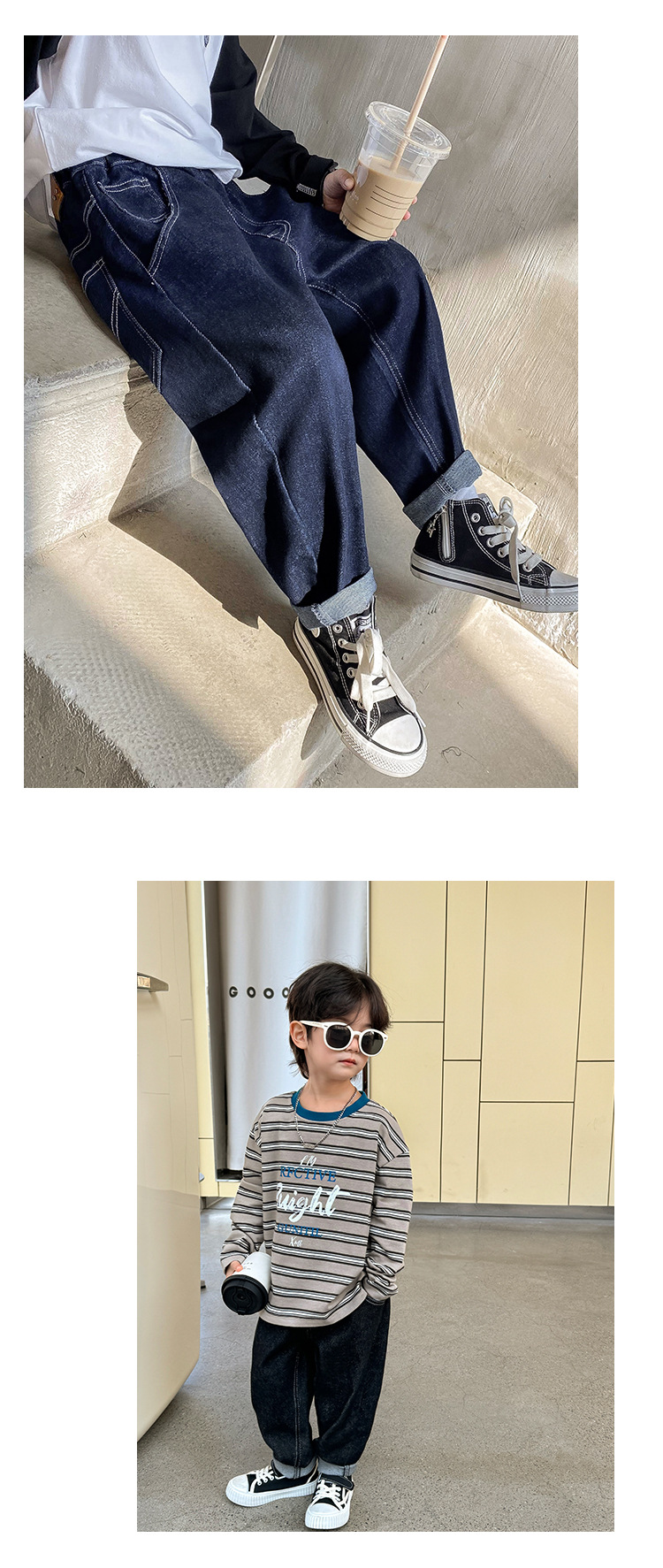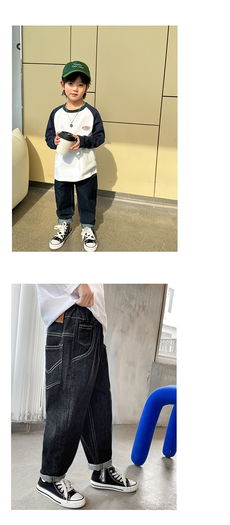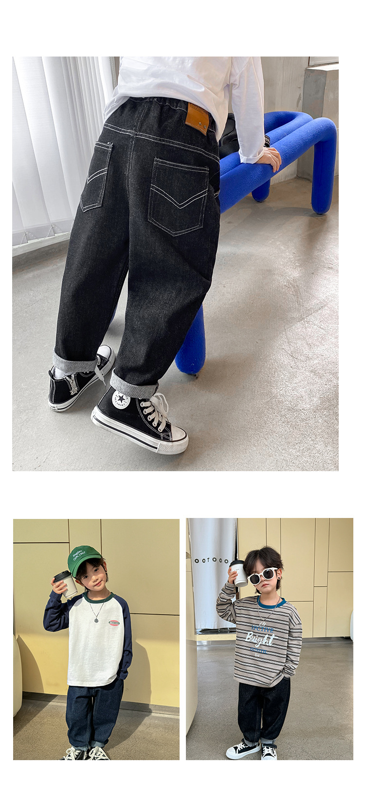 海麻家男の子用2025年冬新作韓国風ゆったり裏起毛厚手デニムパンツ冬服長ズボン中高生向けトレンド