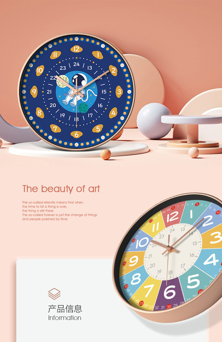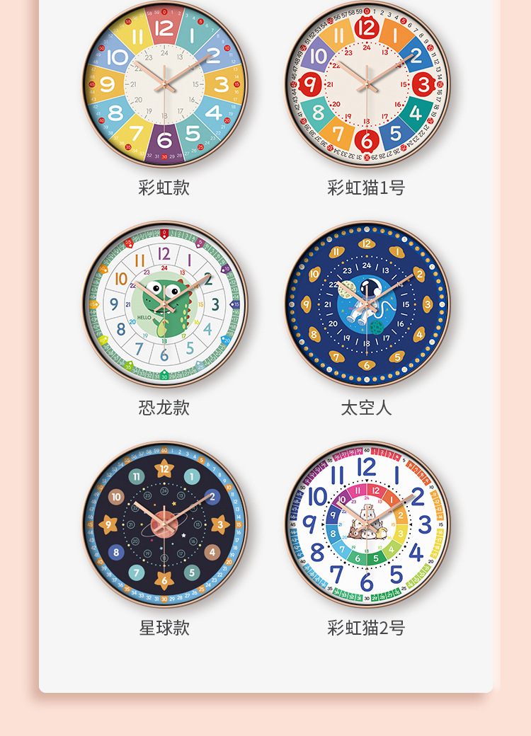 早教掛け時計漫画静音時計児童時間管理石英時計家庭用壁掛け25CM lock
