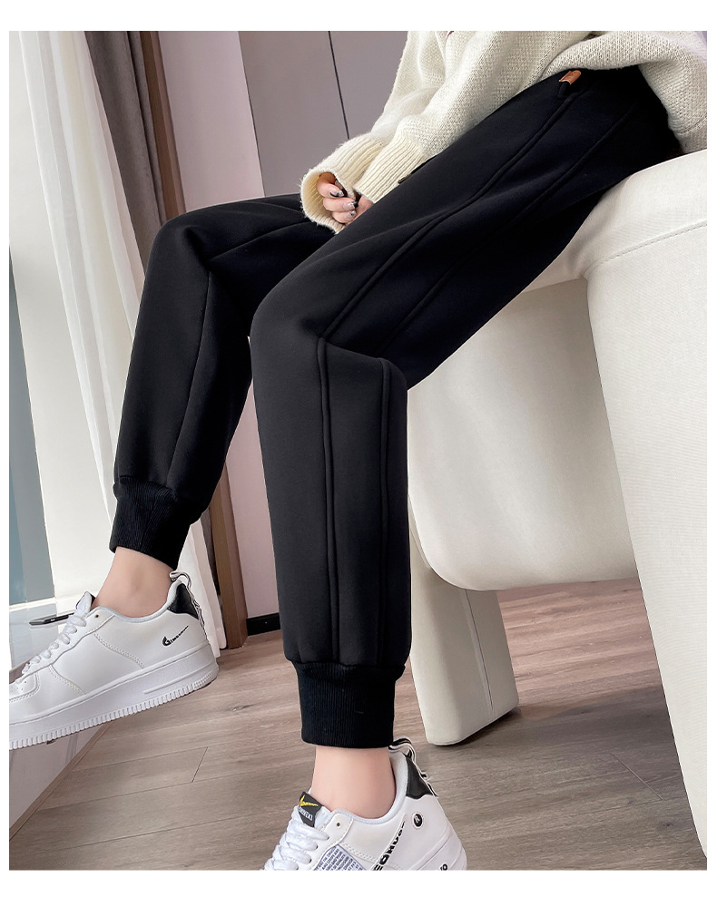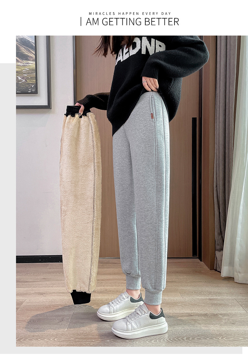ラムベルベット暖かいカジュアルスポーツパンツ女性のための 2021 冬の新綿パンツプラスベルベット肥厚ハイウエストレギンスハーレムパンツ