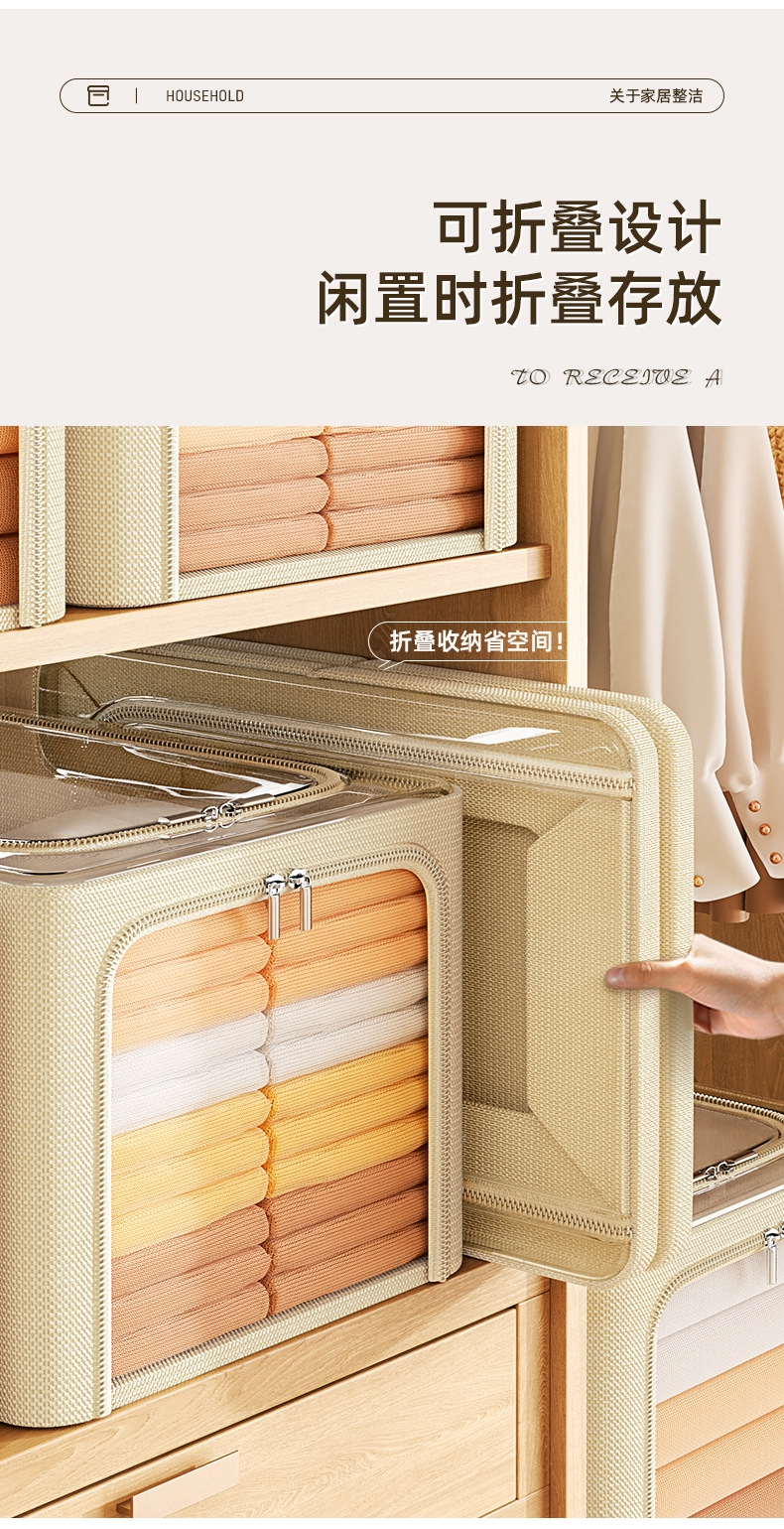 オックスフォード布製収納ボックス スチールフレーム付き 折りたたみ式衣類収納ボックス クローゼット用 家庭用布製整理ボックス