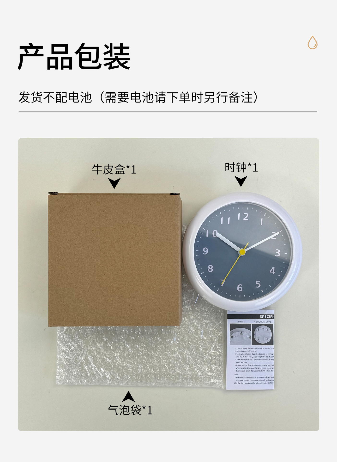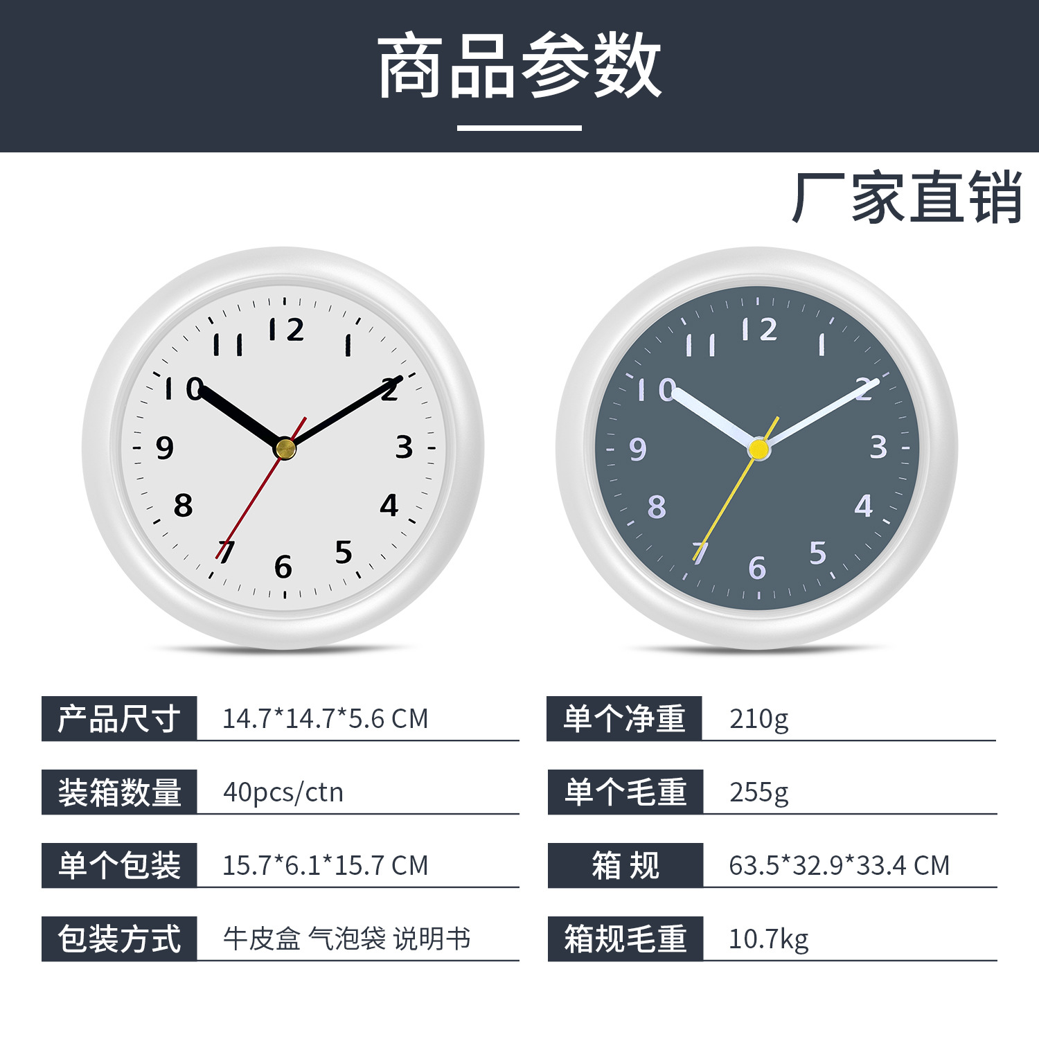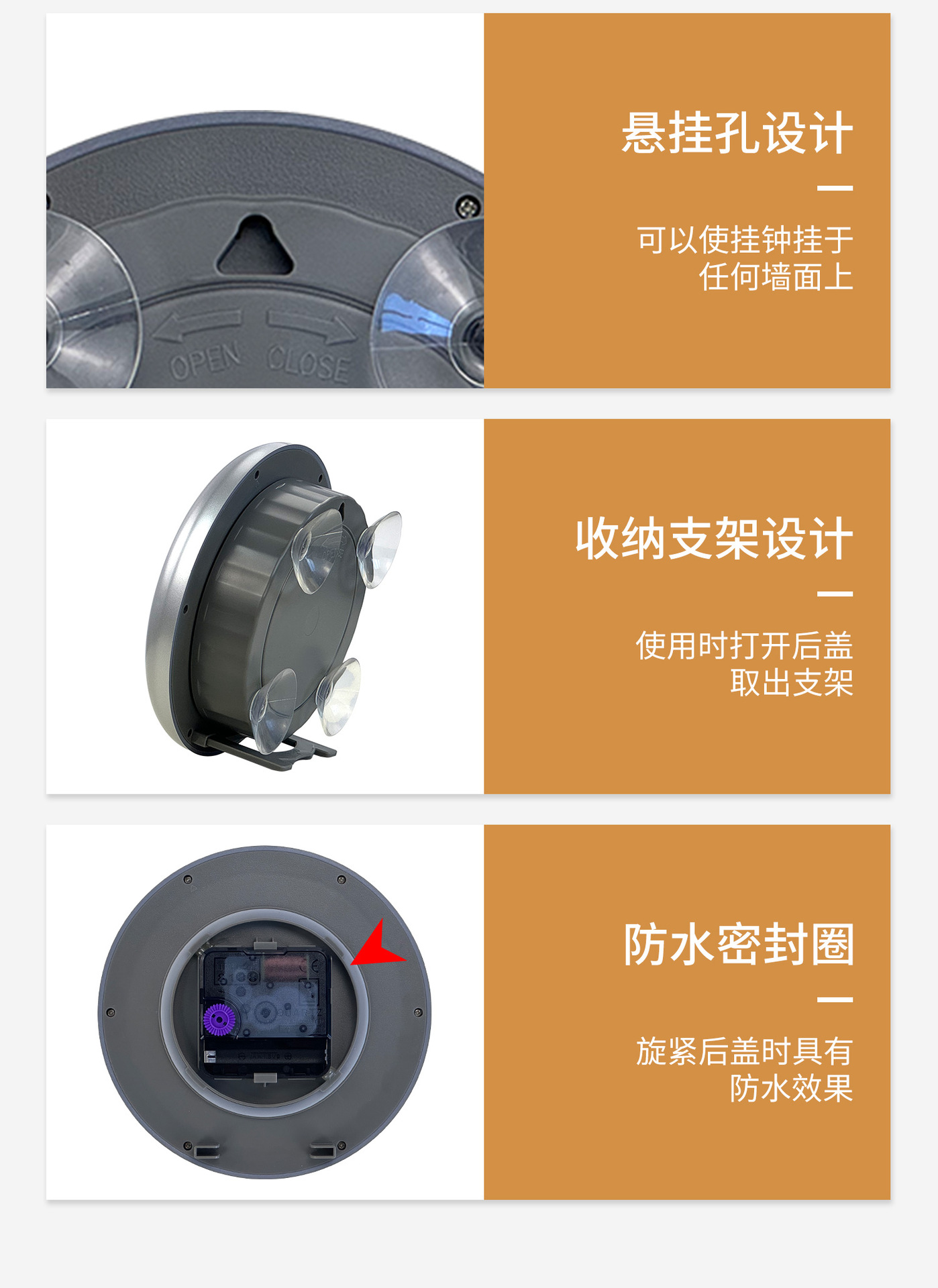 アマゾンクロスボーダー6インチシンプルモダン浴室穴なし吸盤壁掛け時計キッチン防水防霧静音時計