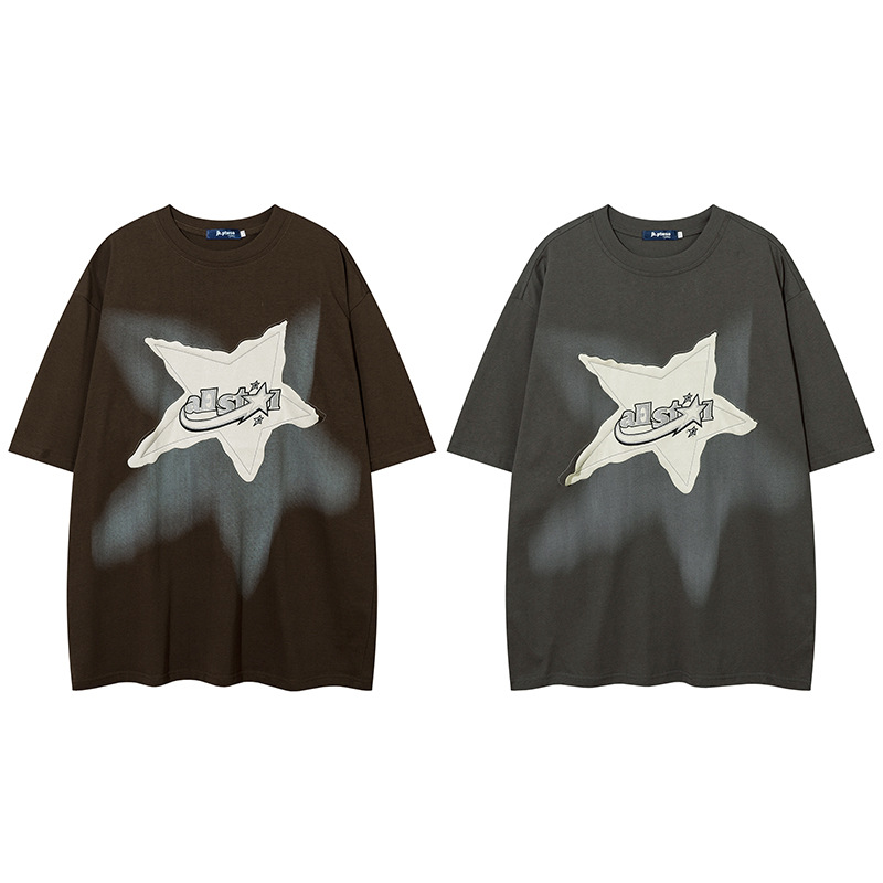 Yprメンズ潮牌デザイン感アメリカレトロ星布ゆるいbf風カップル潮牌ins半袖tシャツ