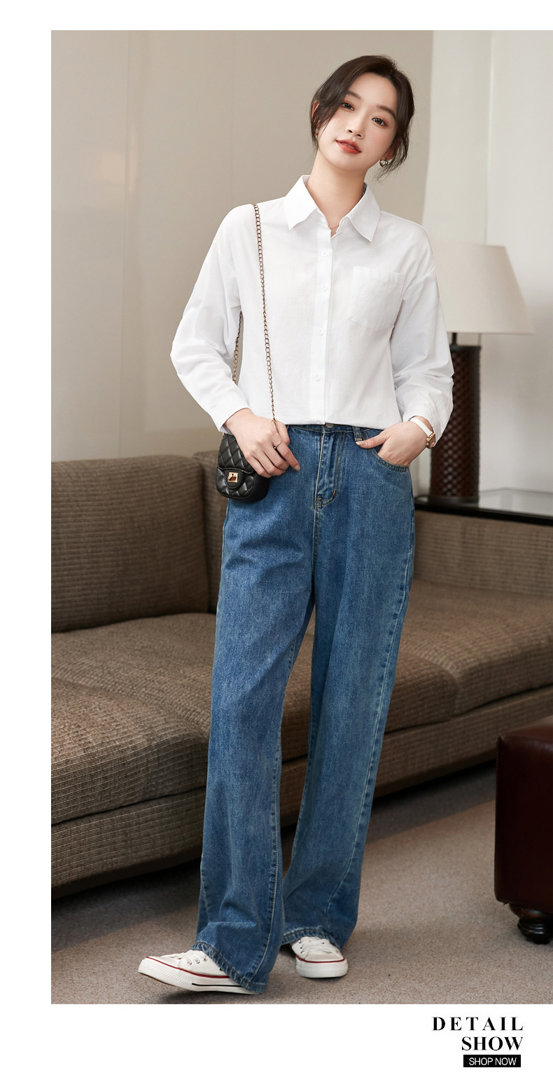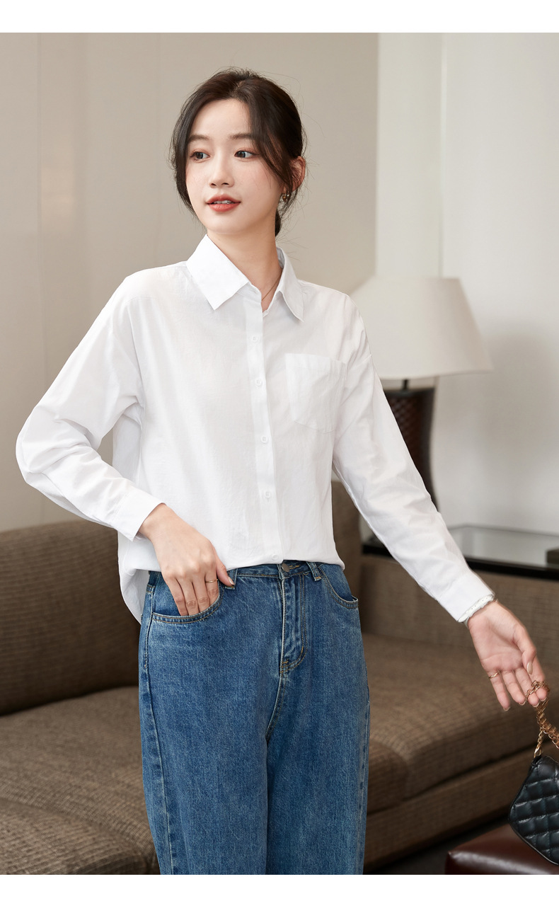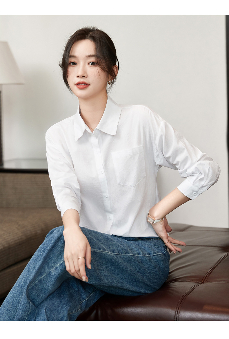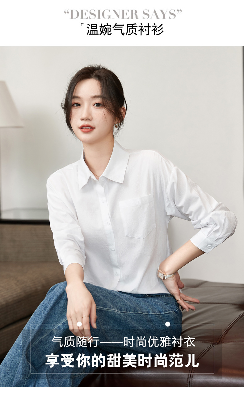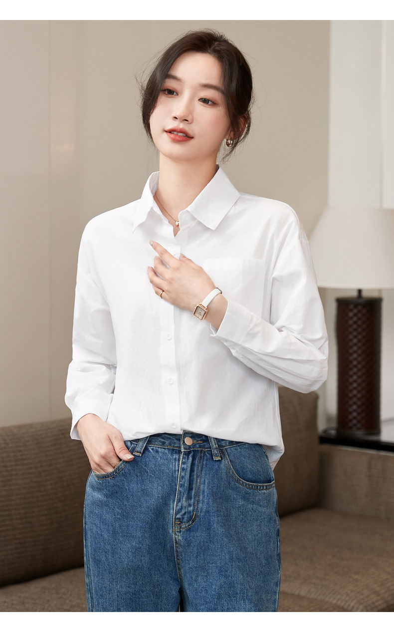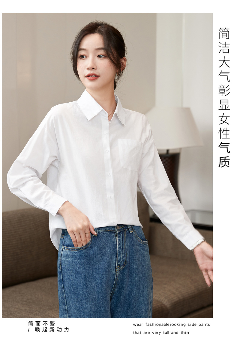 2026年春新作 純綿白シャツ レディース 長袖 韓国風 多用途 ゆったり カジュアル 学生風 アート風 アウター シャツ