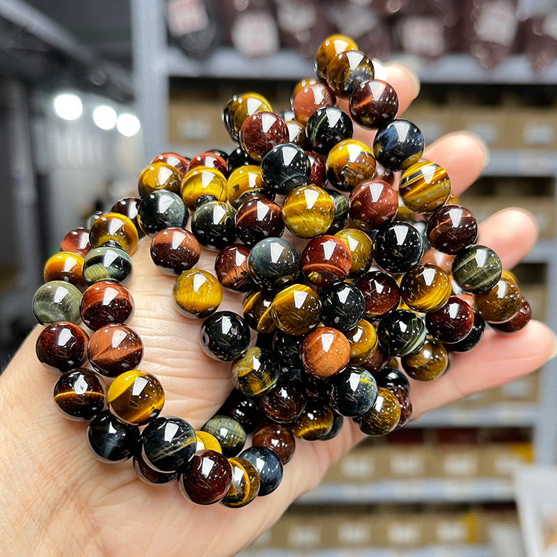 結晶東ジュエリー稲妻目男女スタイルの個性的なトレンド単輪ビーズブレスレット卸売り5a三色虎眼石手串