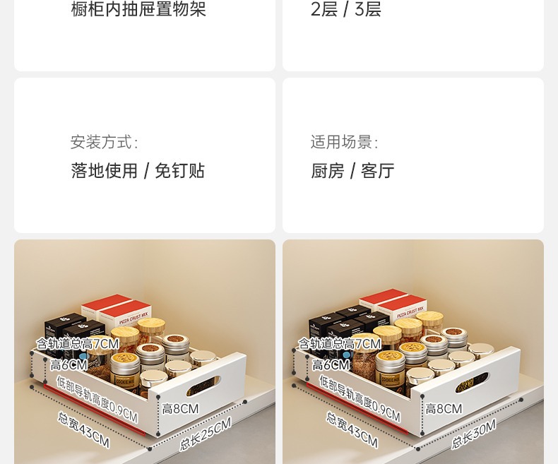 キャビネット内引き出し棚キッチン収納バスケット層調味料食器皿下水槽引き出し式収納ケース