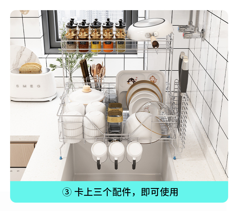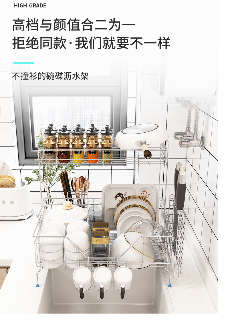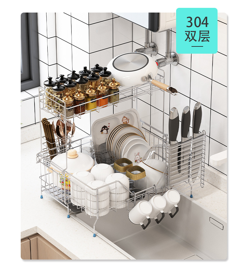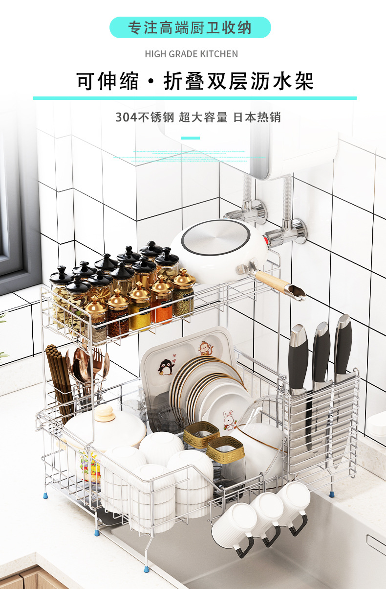日本式の二重の水切り棚は簡単に水を濾過します。食器棚は伸縮可能な水槽の収納棚です。