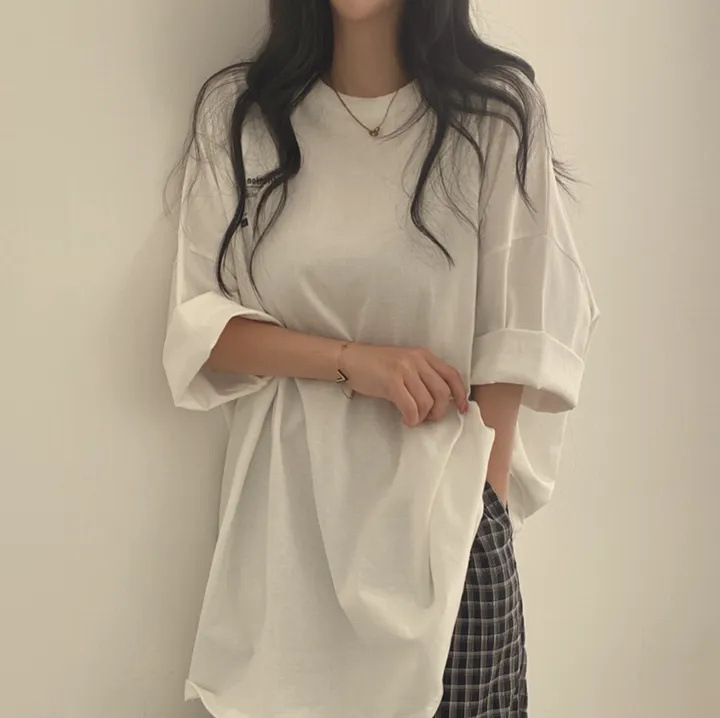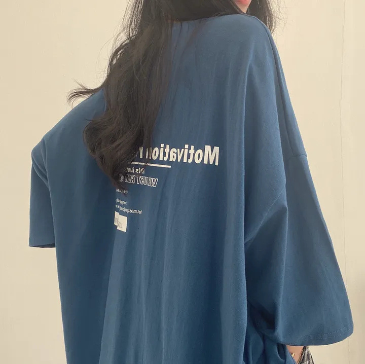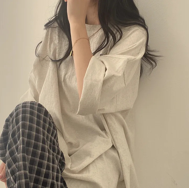 綿の半袖のtシャツの女性の中で長いタイプの夏のネットの赤いゆるい韓国版の卸売りの潮のブランドの中で長いタイプの2023年の新型の韓国