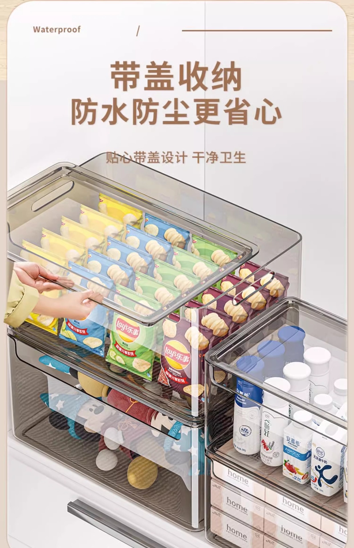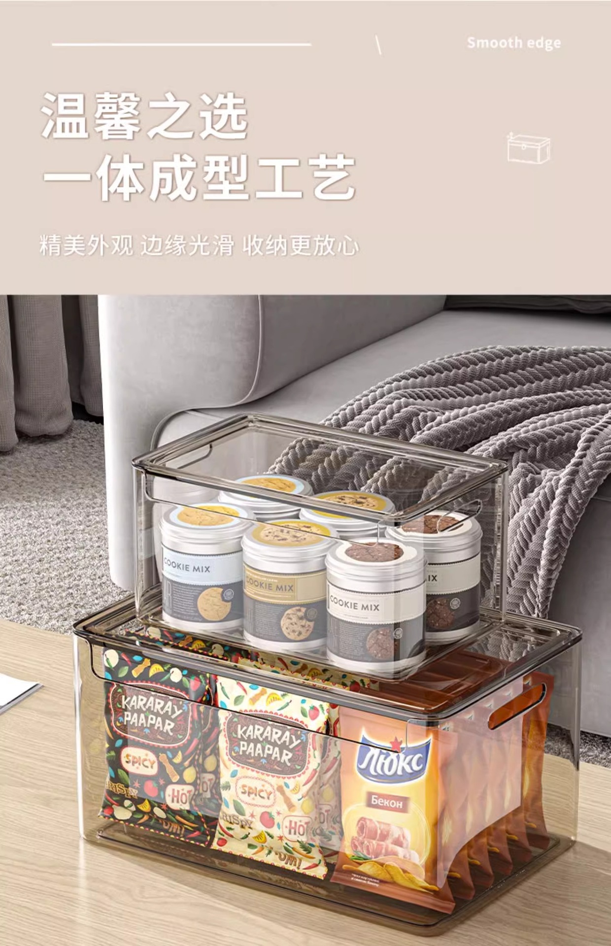 衣類透明寝室ベランダ収納ボックスプラスチック家庭用整理おやつ蓋付き収納ボックスリビング卓上収納