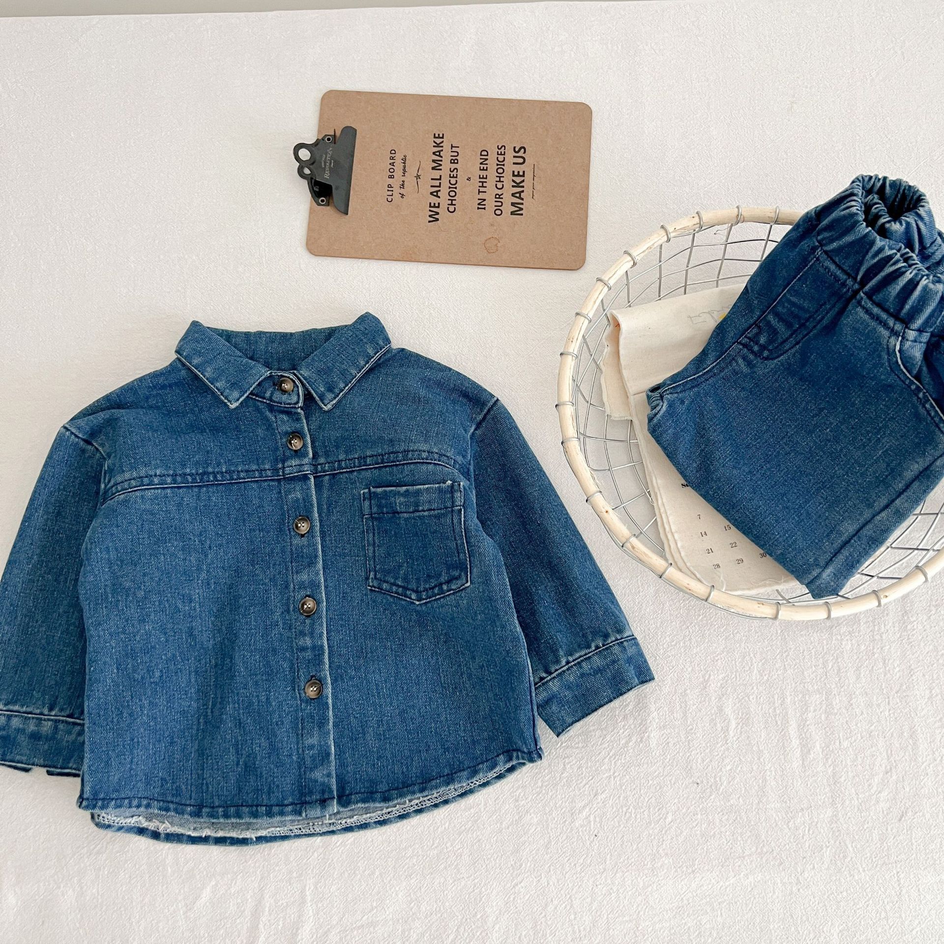 秋の子供服新型韓国風デニムセット男女宝レトロ長袖上着デニムパンツ2点セット