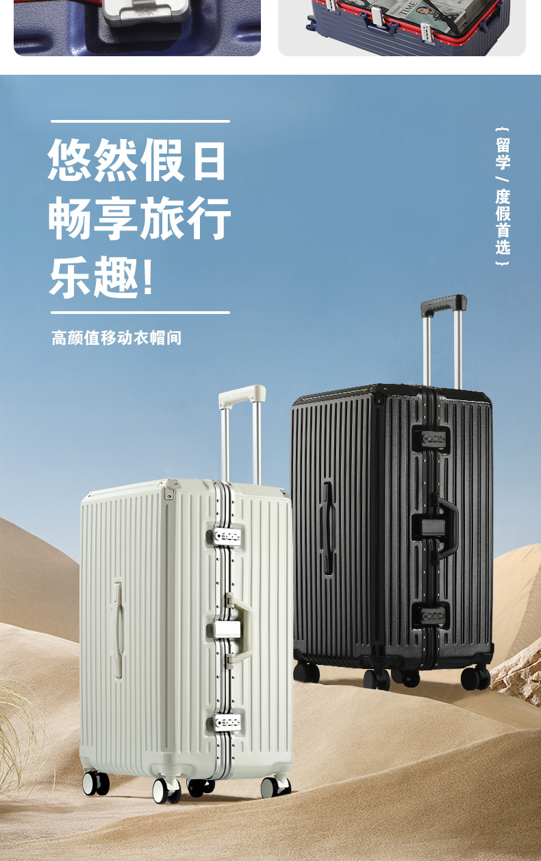 新型厚型大容量スーツケース、留学や休暇に最適なトロリーケース、男女兼用、厚型で見た目も美しいトラベルケース