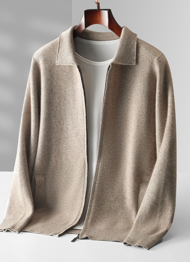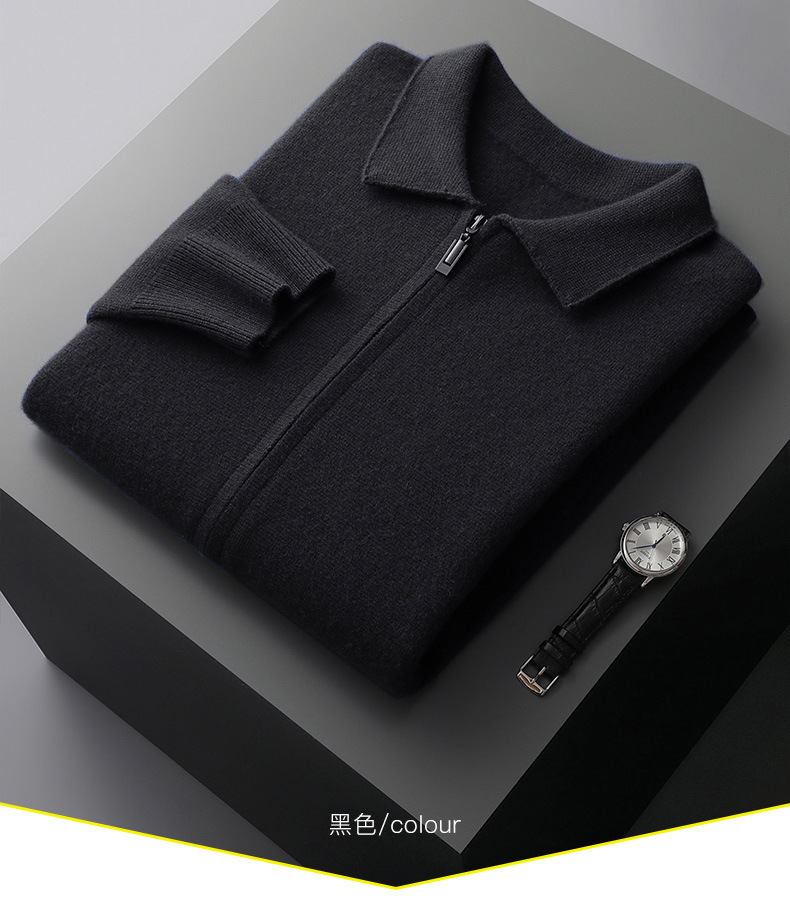 100% 純ウールカーディガン秋冬男メリヤスカーディガン新作ゆったり外着トレンド折り襟厚手ビッグコート