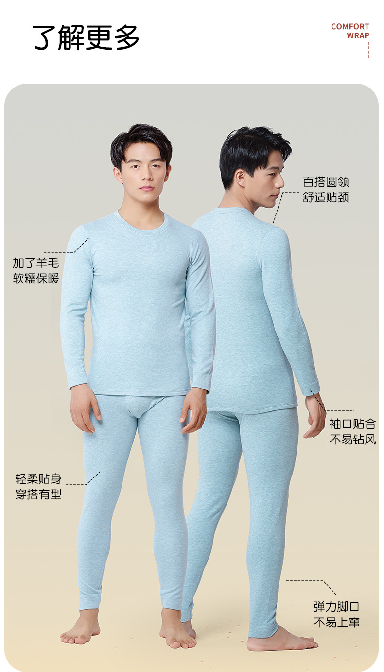 豪華級の绢糸防寒ウール秋冬の男性服のズボンのセットとベルベットの厚い底付き保温下着