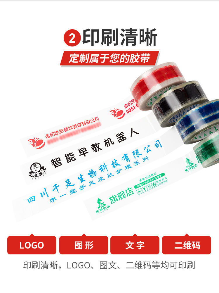 テープカスタムロゴ印字パターン二次元コード封箱梱包物流包装販売透明カスタムテープ