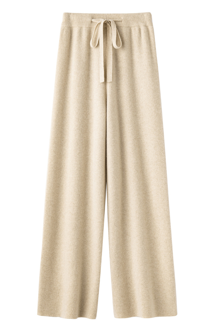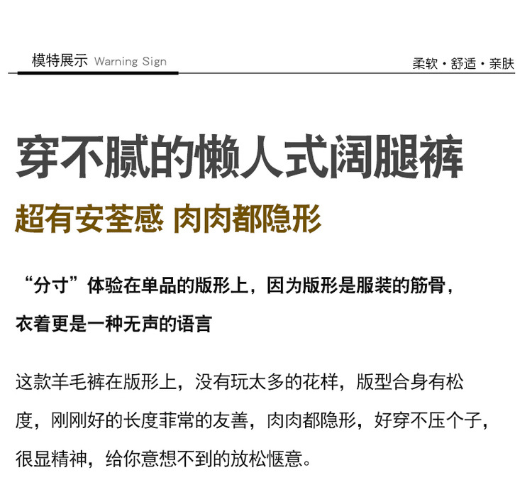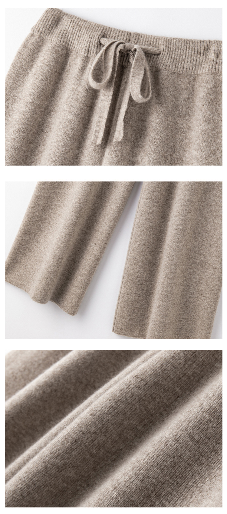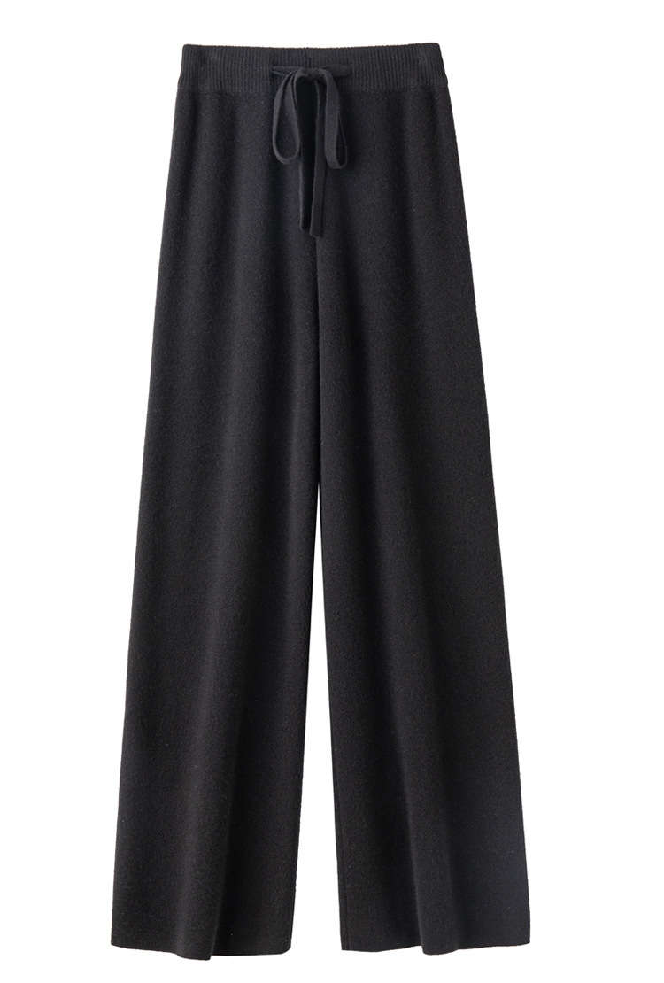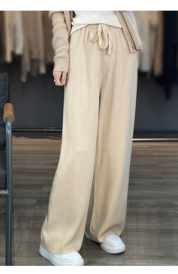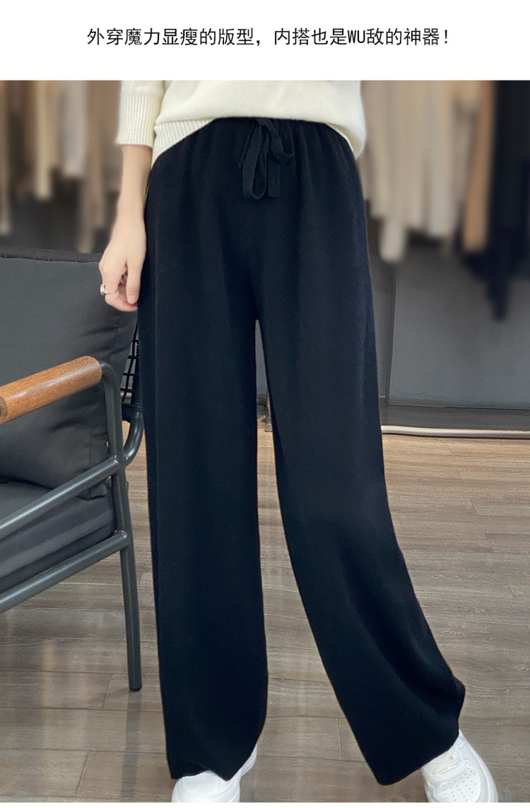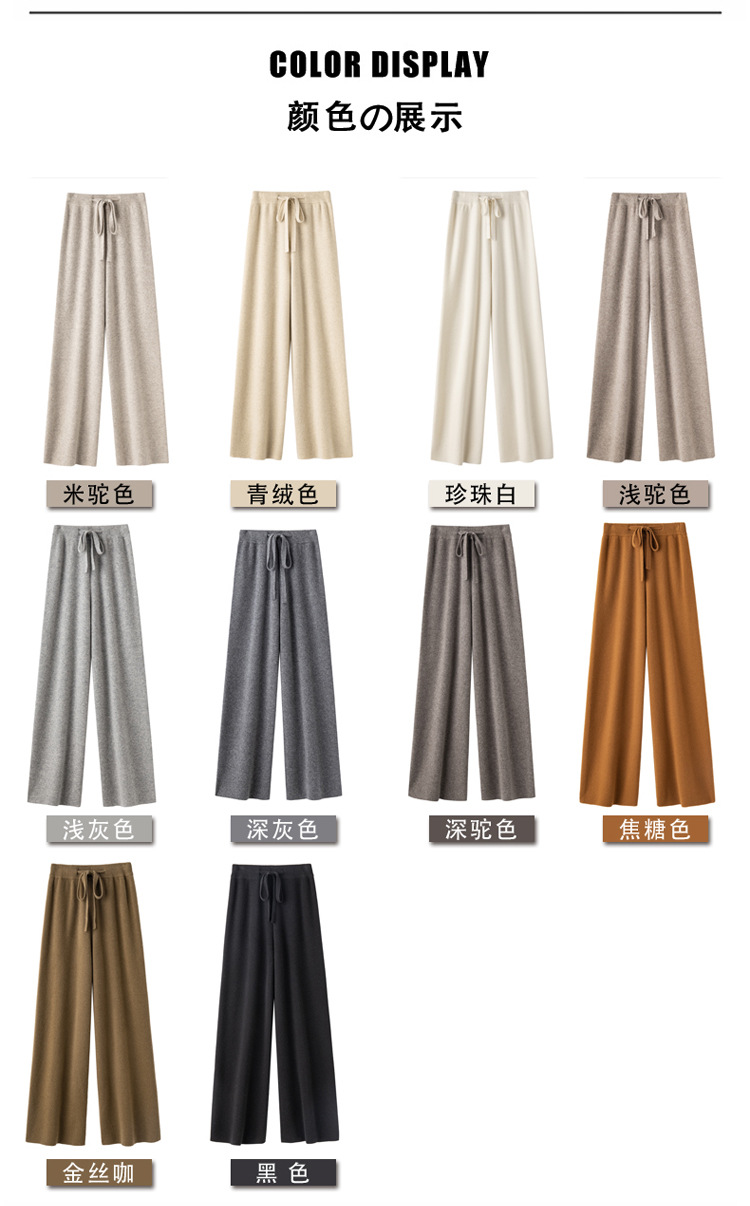 ウールのズボンの女性の秋冬の新型の純色の自然な腰のメリヤスは厚い広腿のズボンのカジュアルな垂感を厚くします。