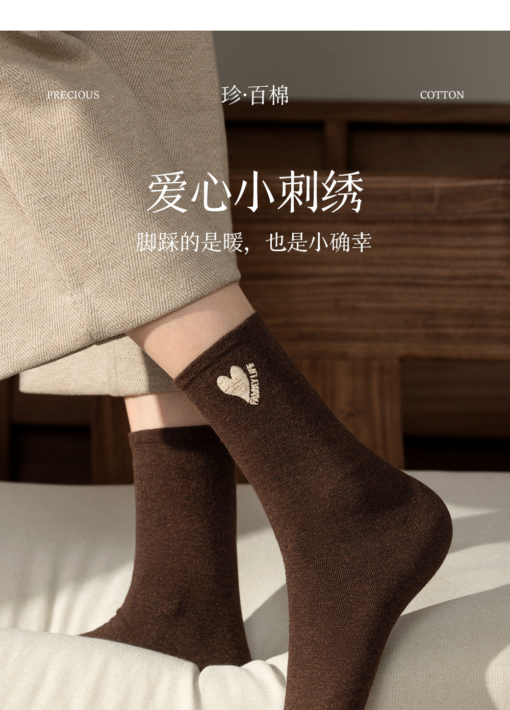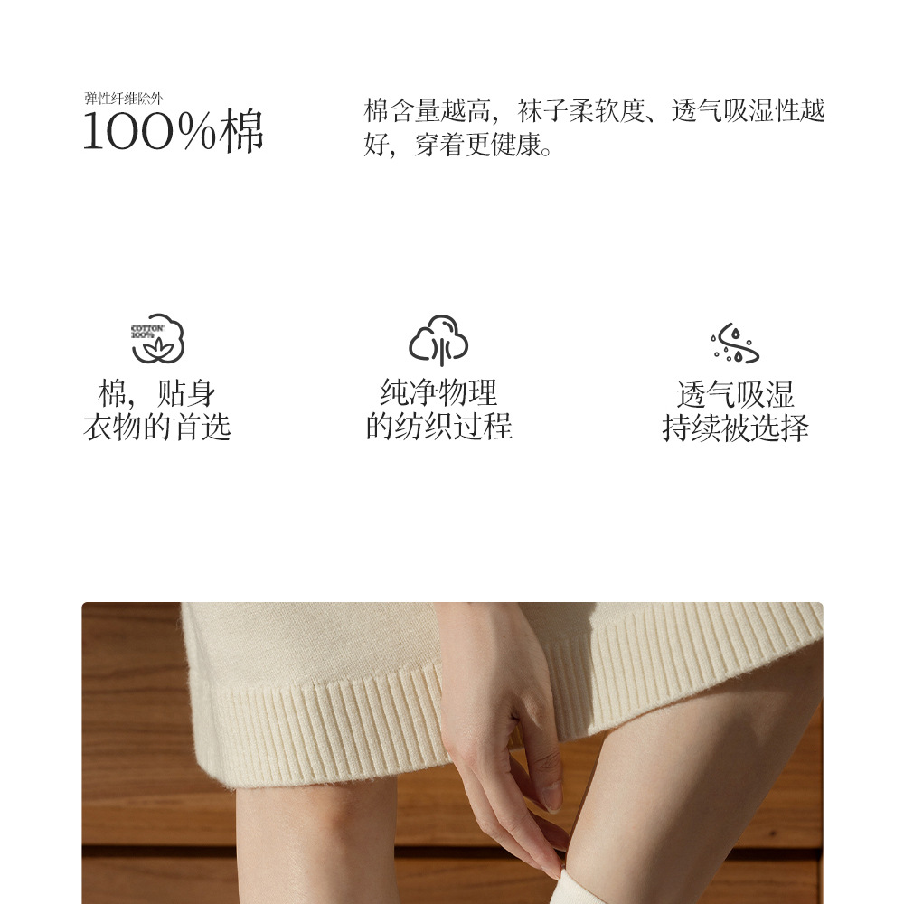 諸及び純綿靴下100% 綿女性靴下防臭抗菌抗起球手縫い綿中筒靴下秋冬綿靴下