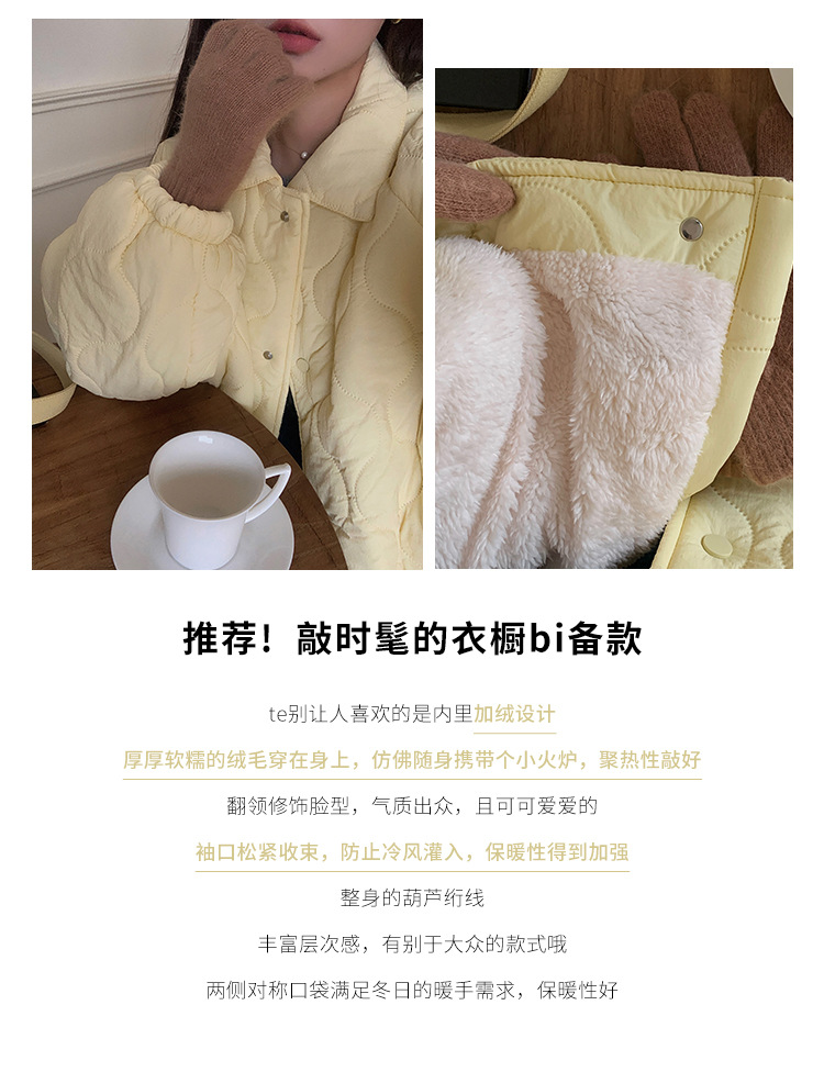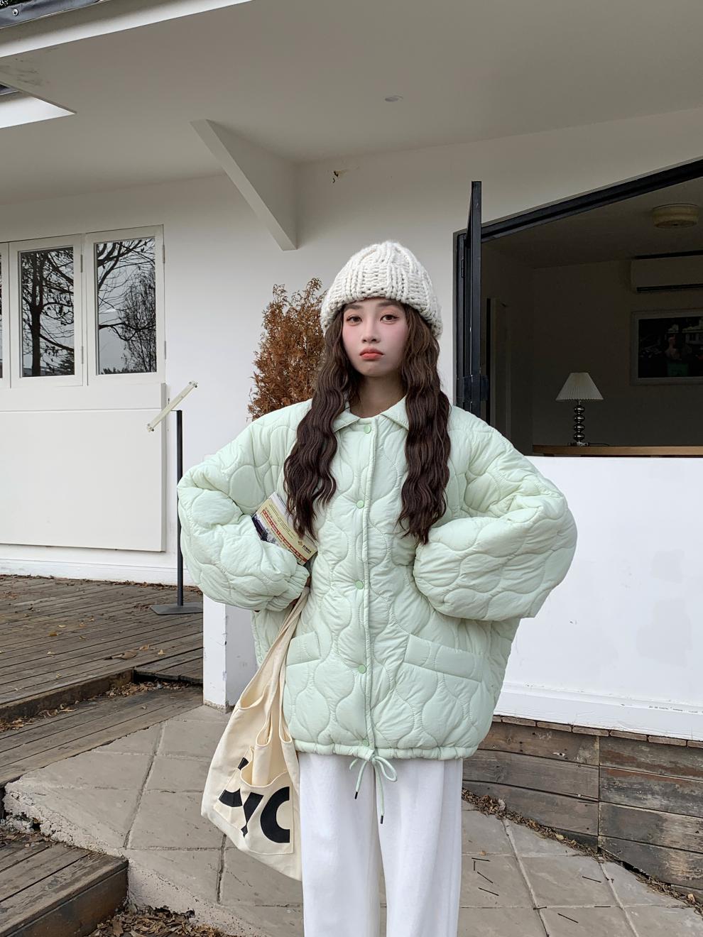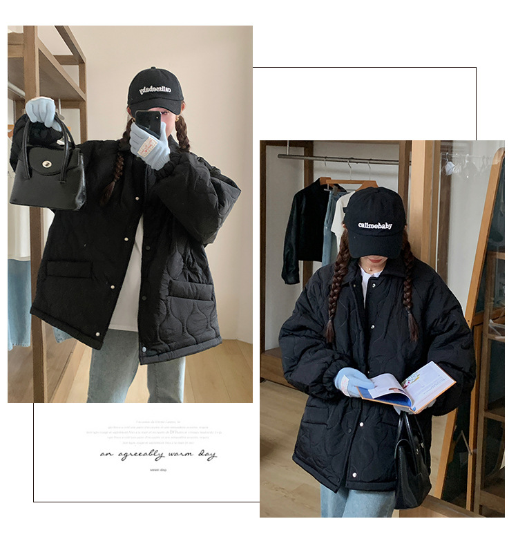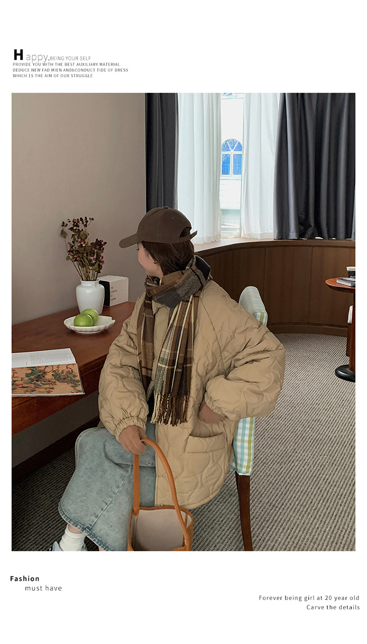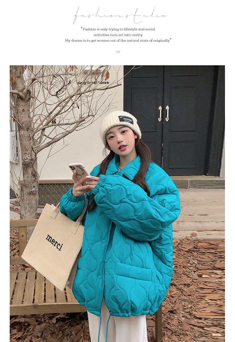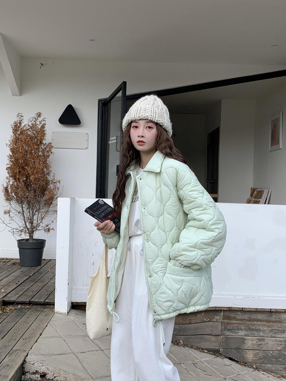 菱格綿服女2023新型韓国版冬服レトロ大サイズコートパン服ゆったり内底羊毛女