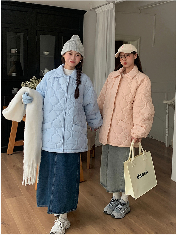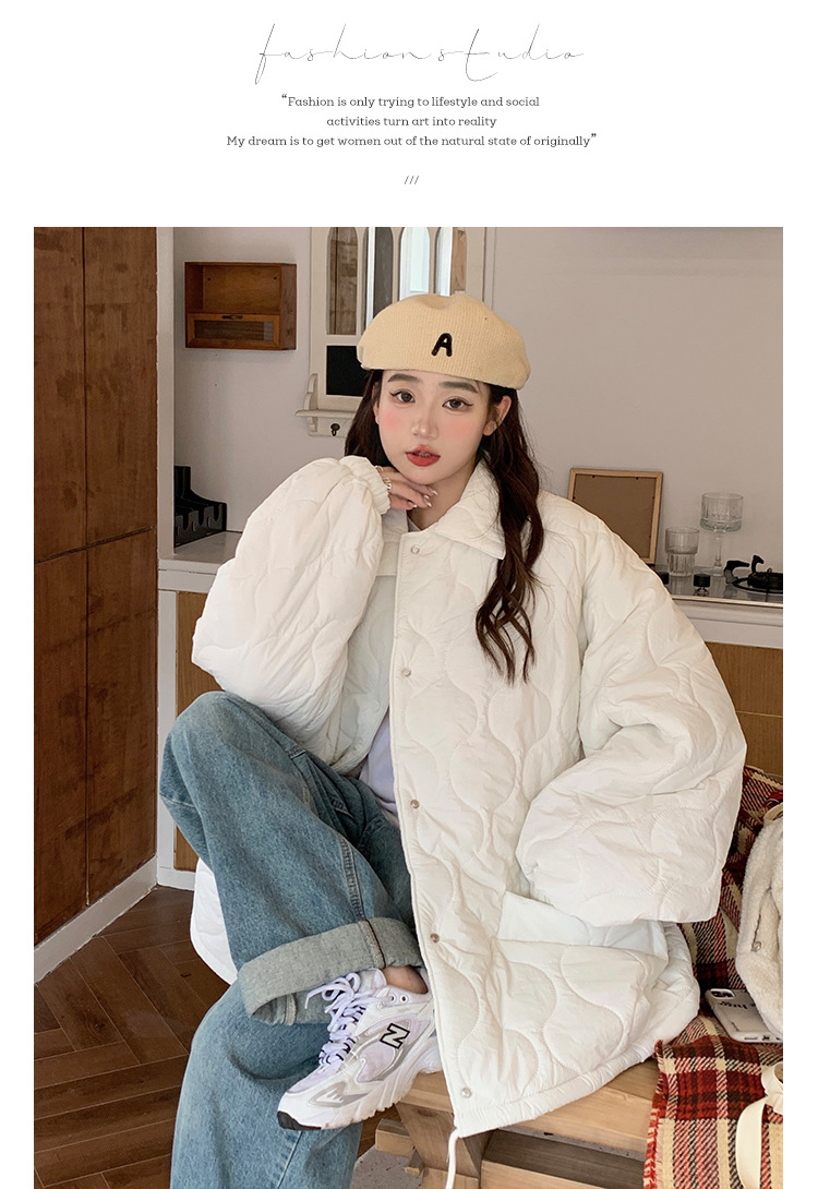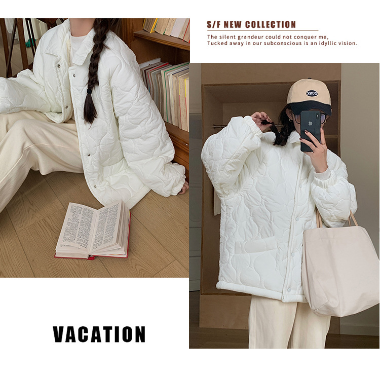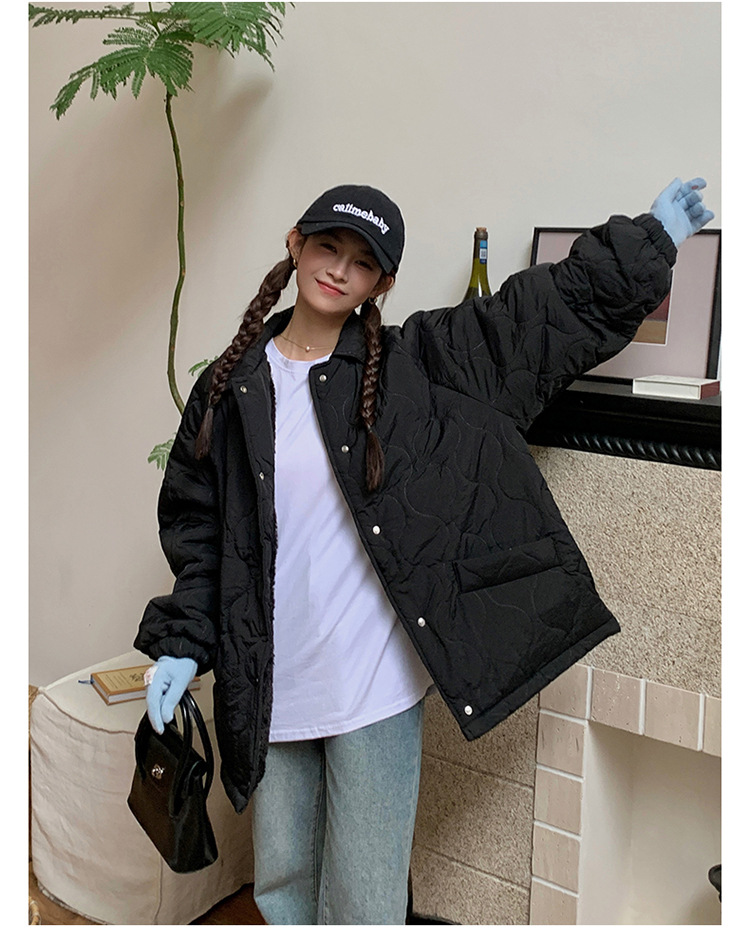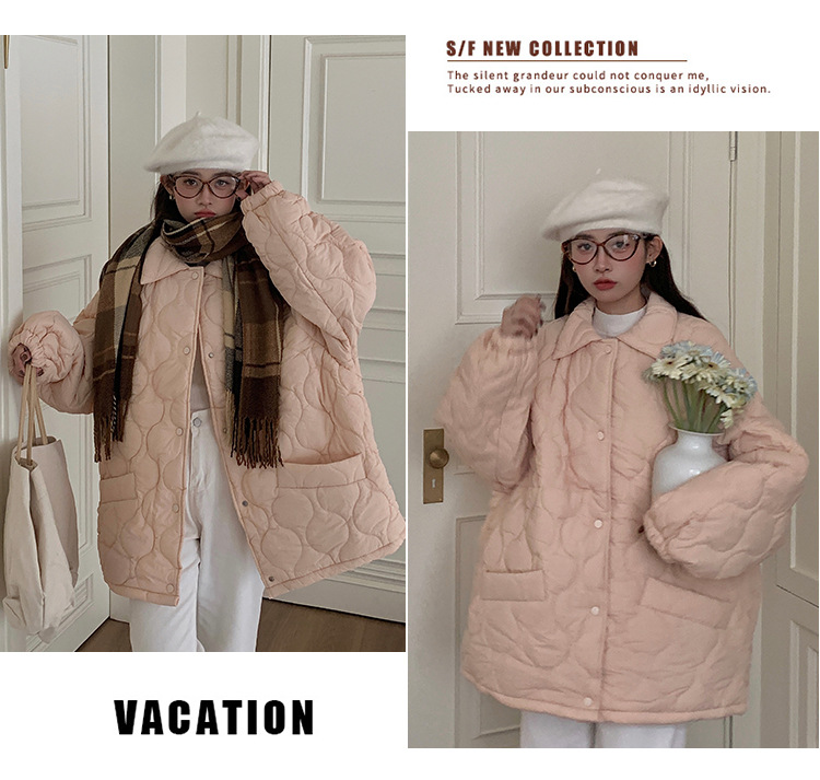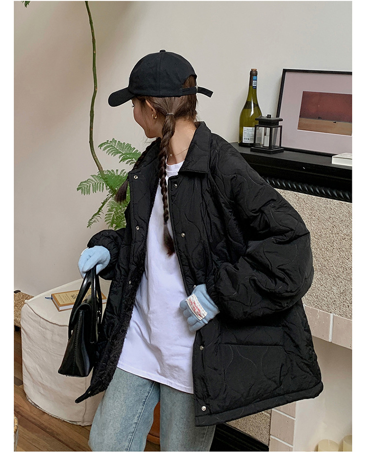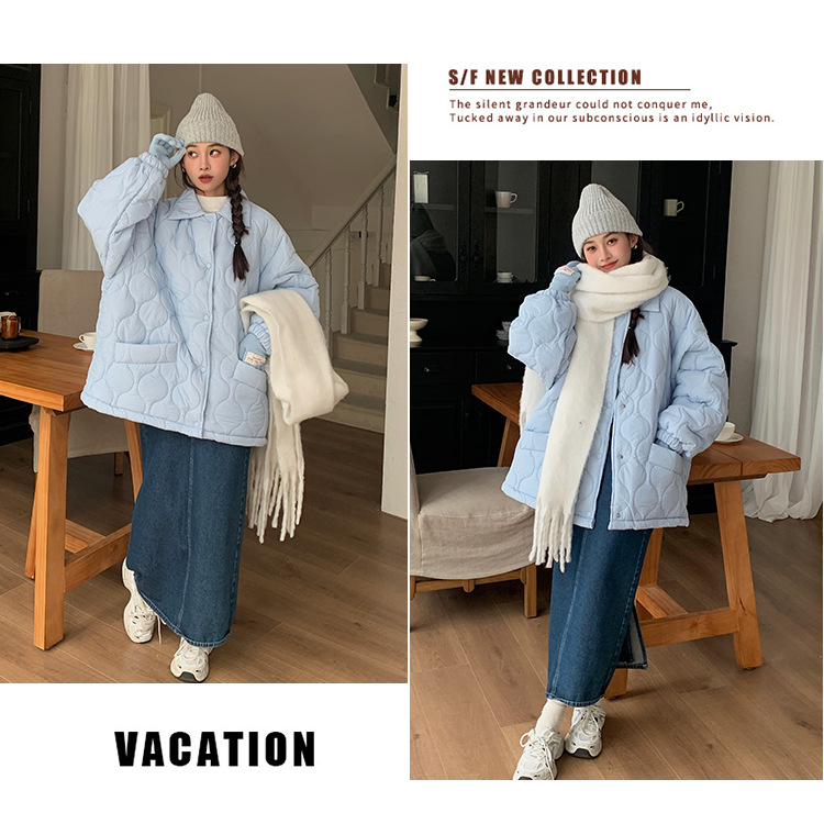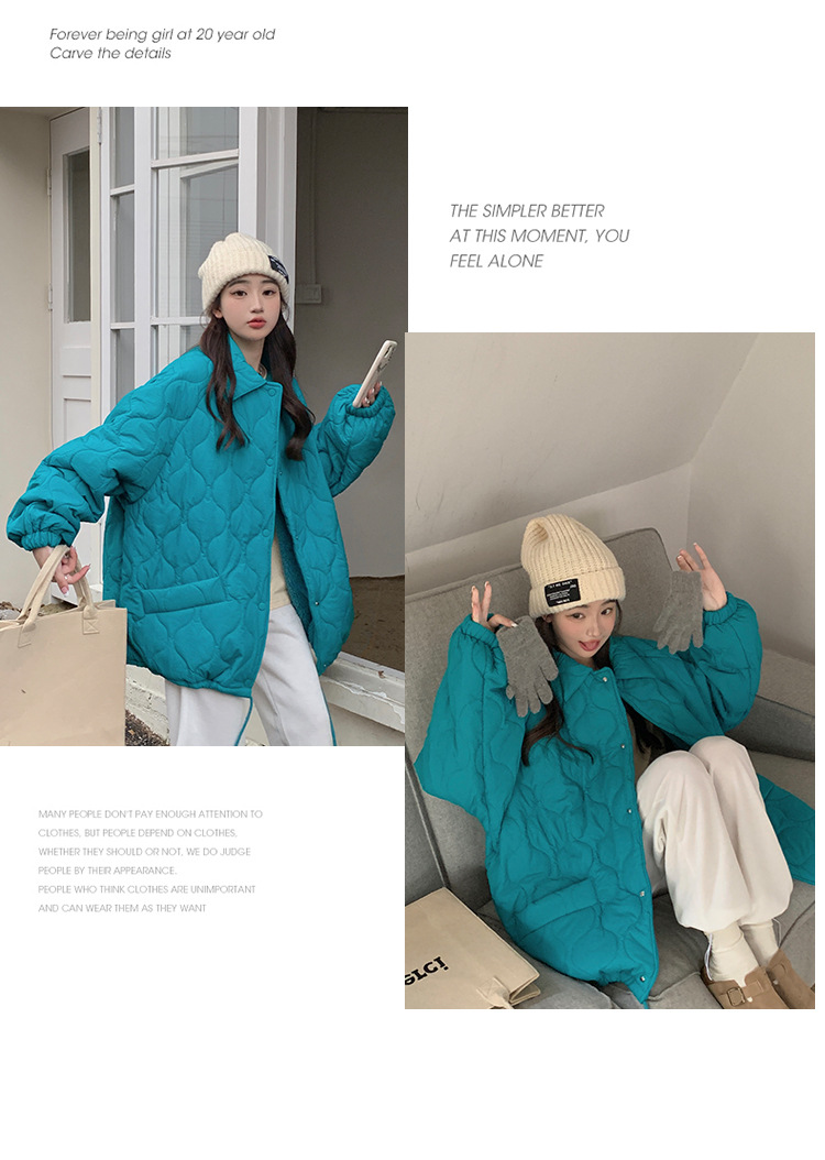 菱格綿服女2023新型韓国版冬服レトロ大サイズコートパン服ゆったり内底羊毛女