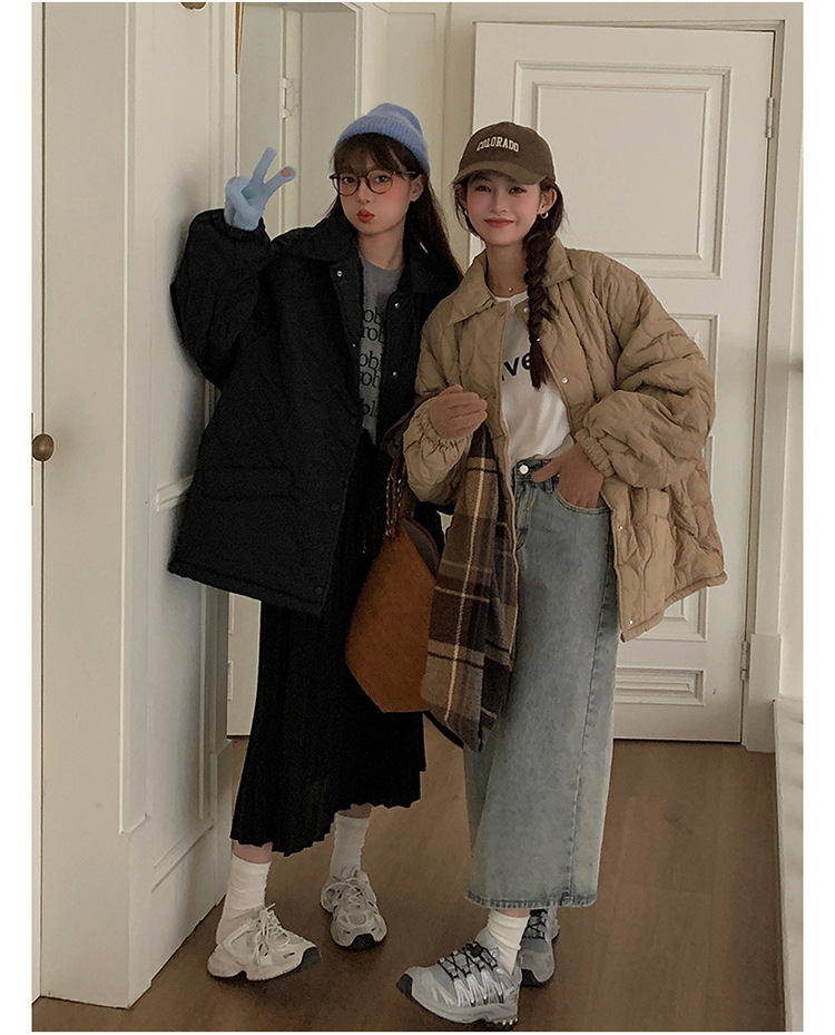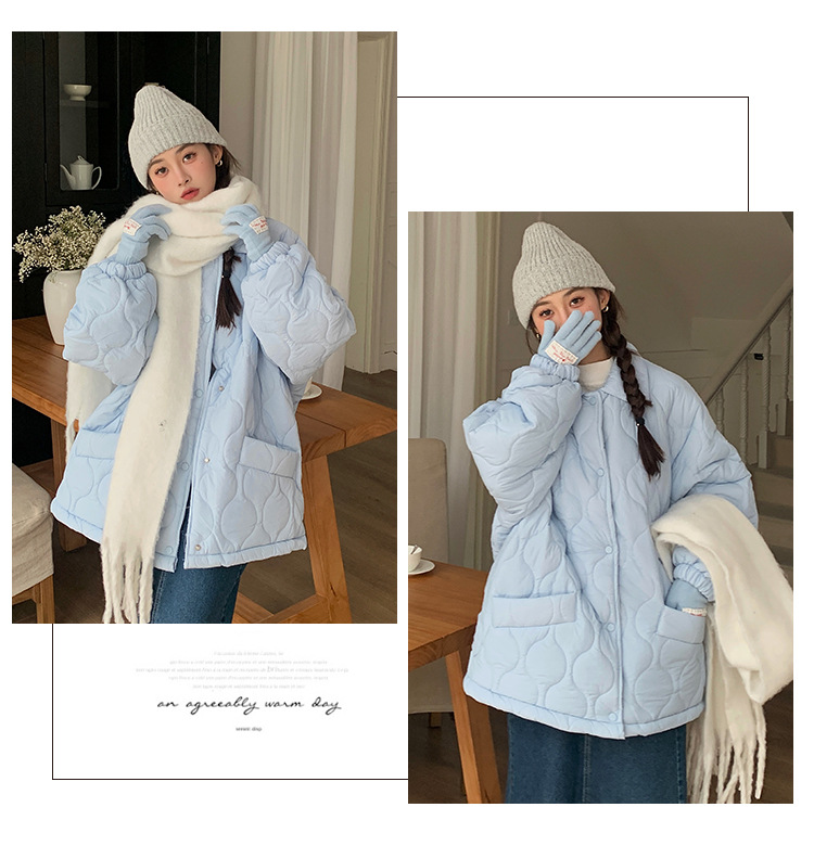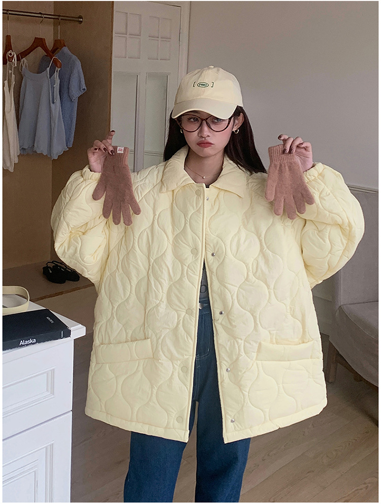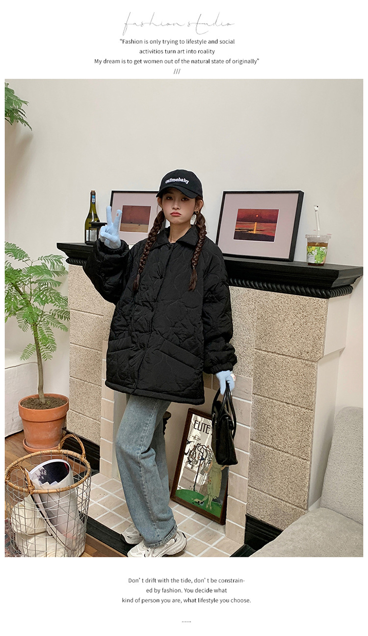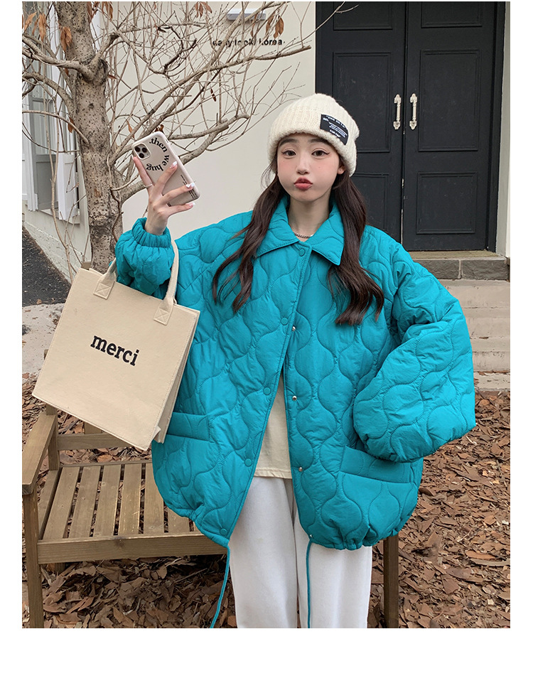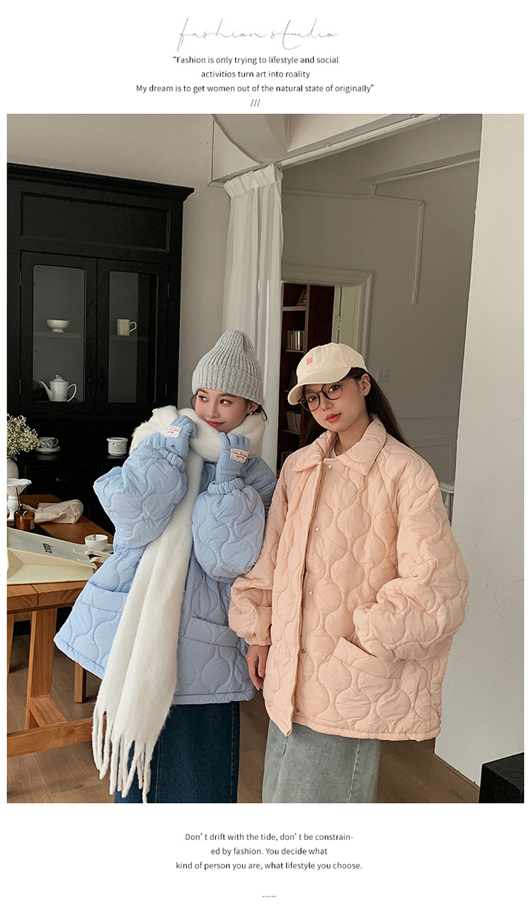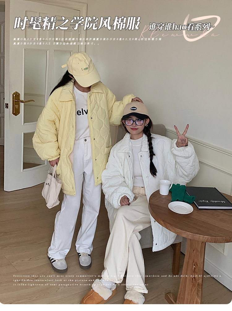 菱格綿服女2023新型韓国版冬服レトロ大サイズコートパン服ゆったり内底羊毛女