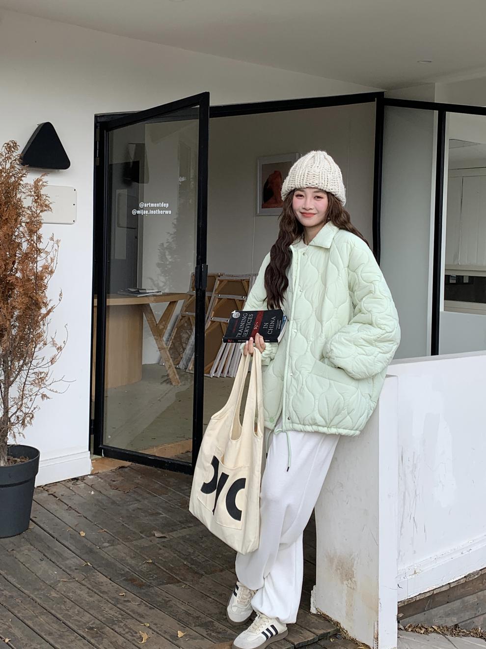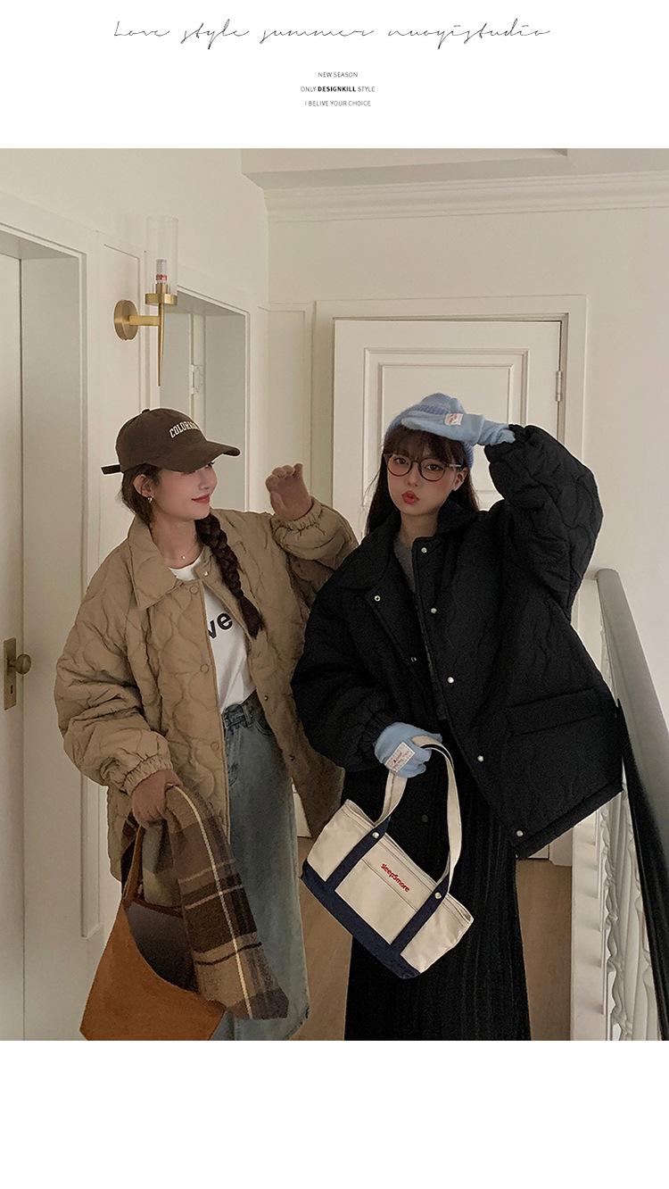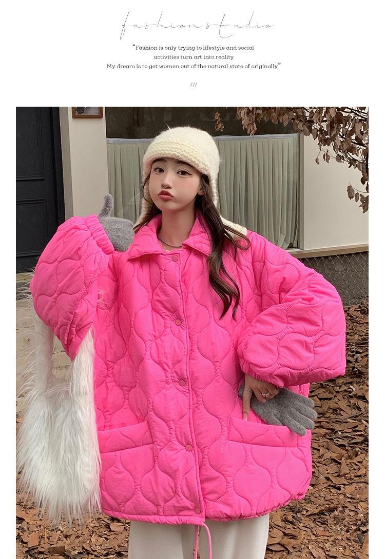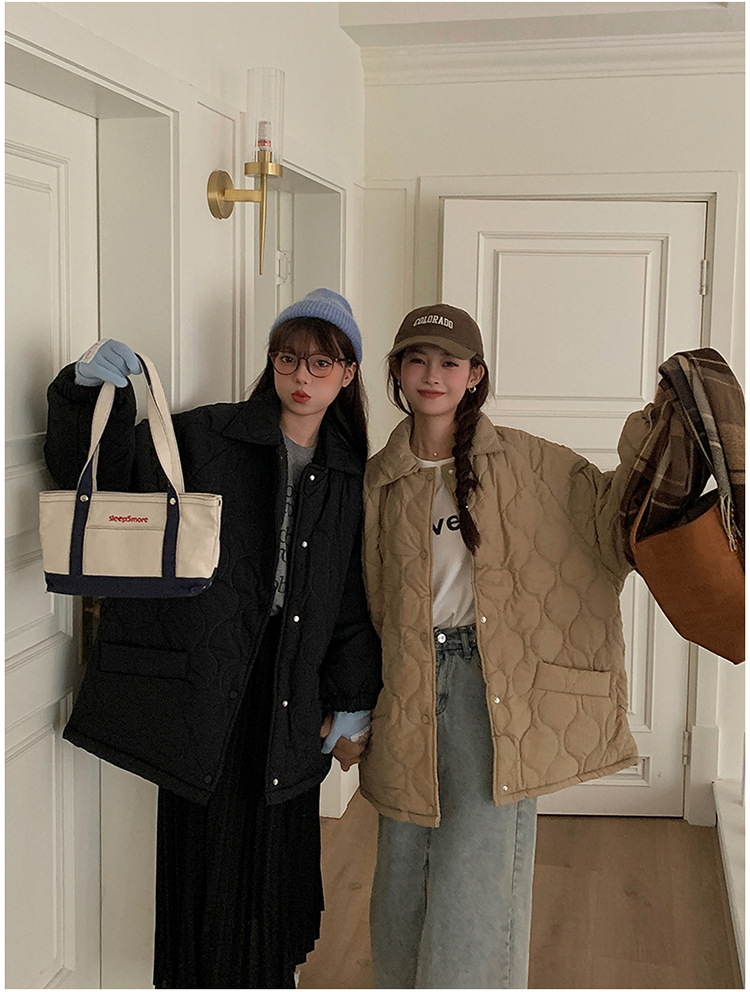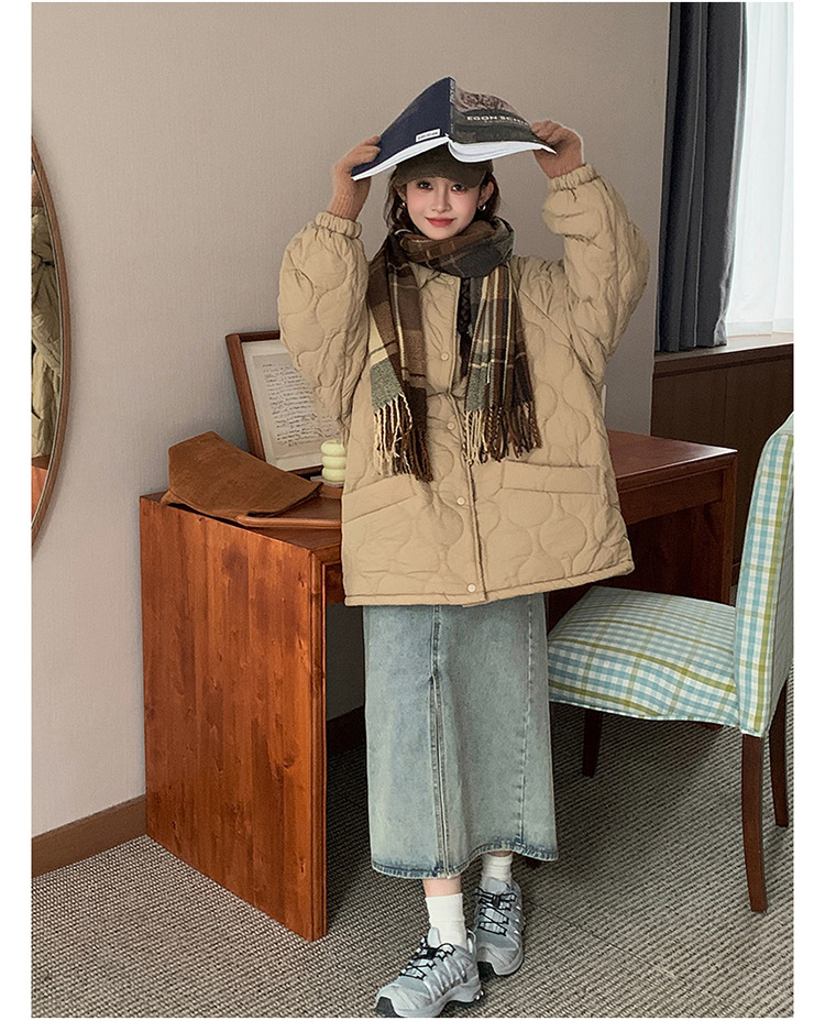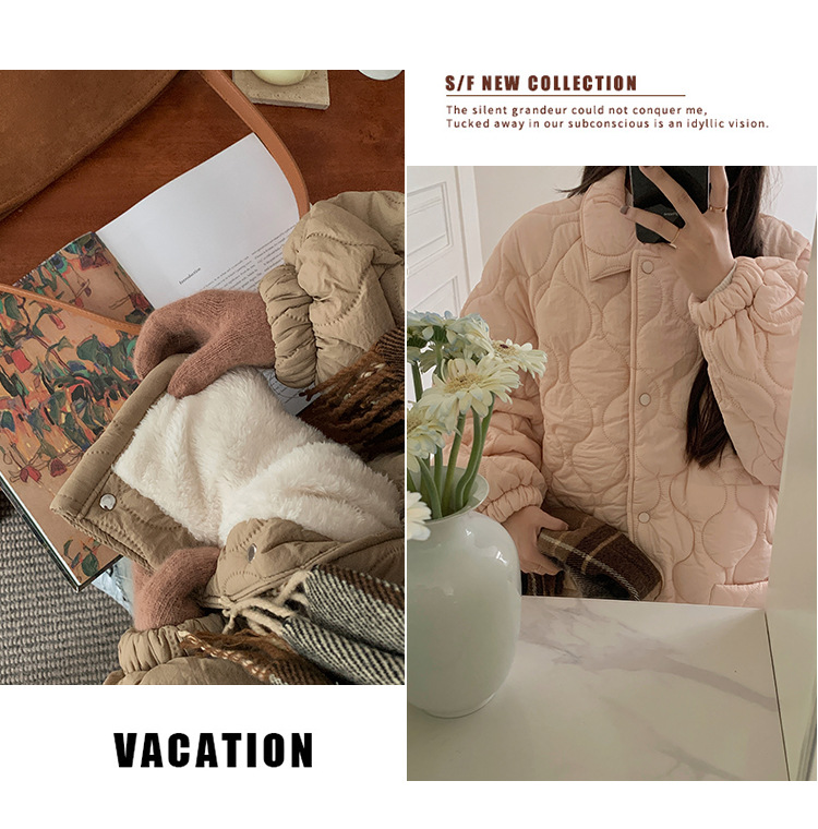 菱格綿服女2023新型韓国版冬服レトロ大サイズコートパン服ゆったり内底羊毛女