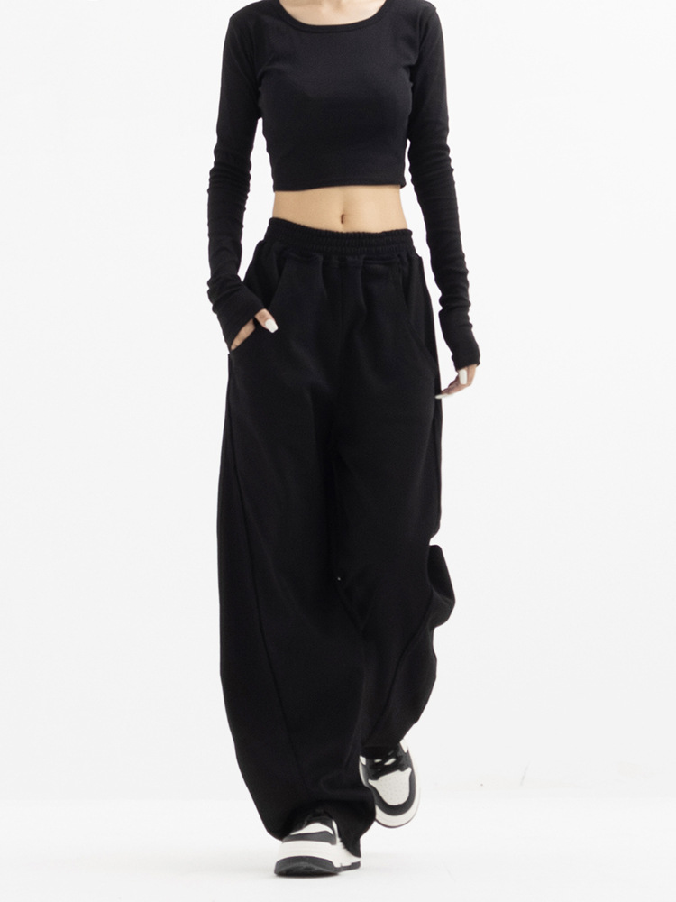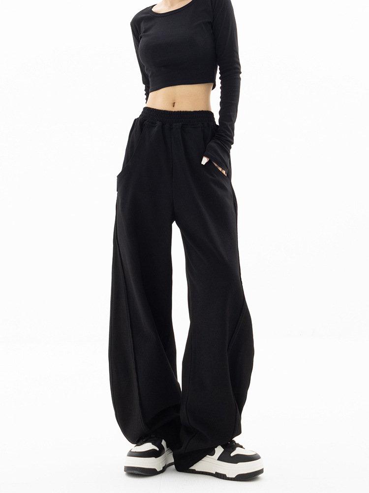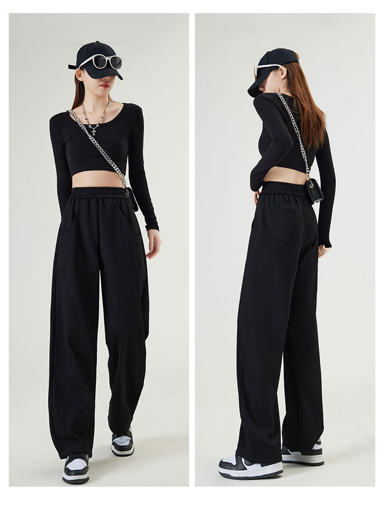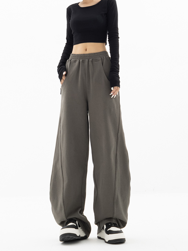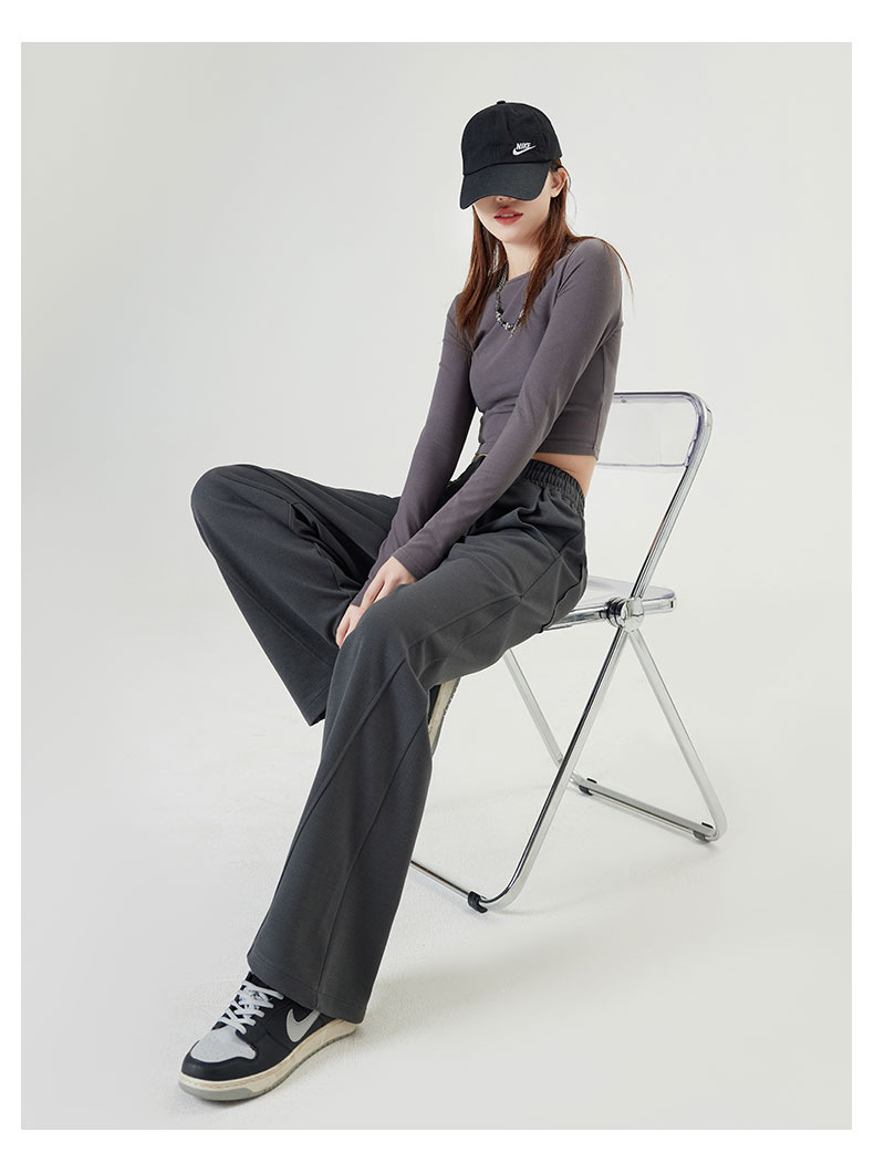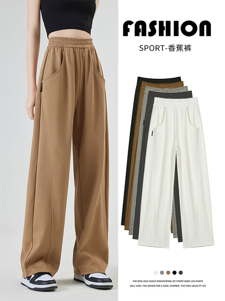 狭い版の広腿のズボンの女性の春秋2023の新型の高腰のバナナのズボンのカジュアルな垂直感のストレートなスポーツのズボン