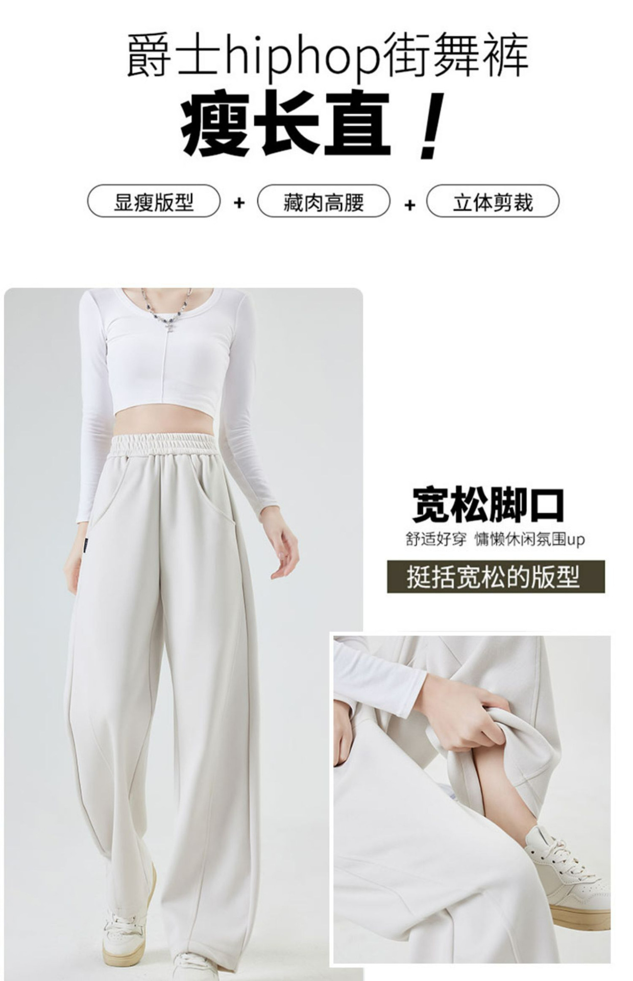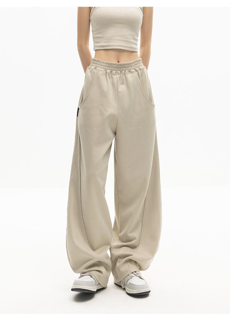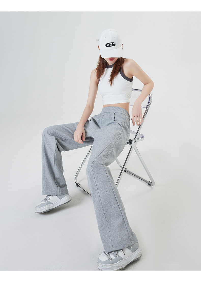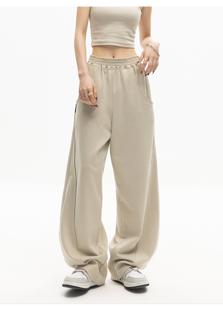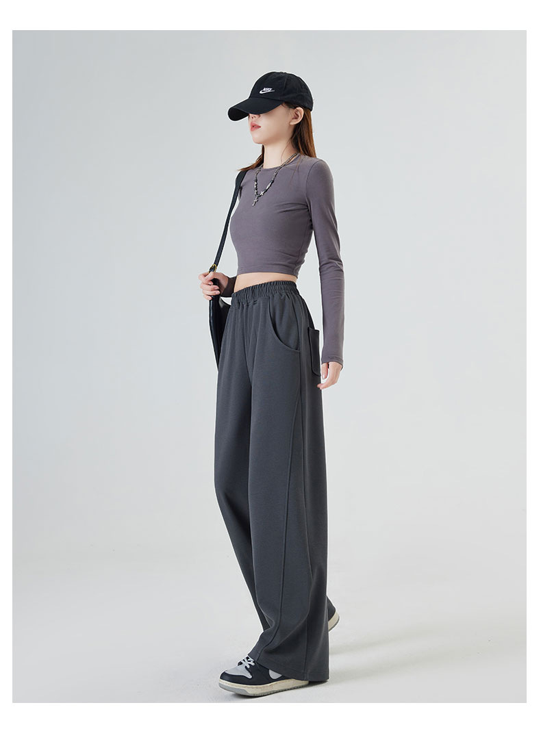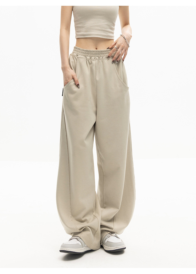 狭い版の広腿のズボンの女性の春秋2023の新型の高腰のバナナのズボンのカジュアルな垂直感のストレートなスポーツのズボン