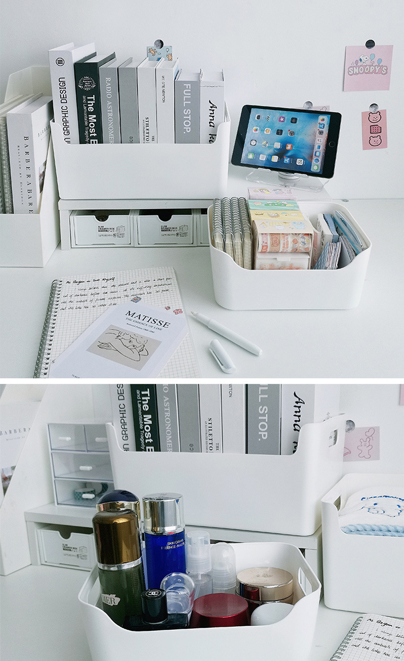 ホーム収納ボックス長方形プラスチック小ボックス白いミニ蓋なしデスクトップ整理収納ボックス無印ホーム