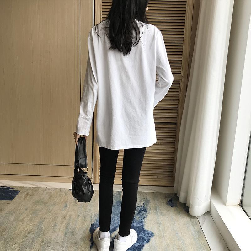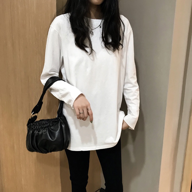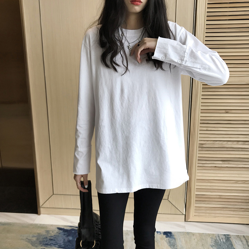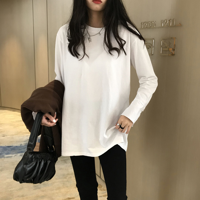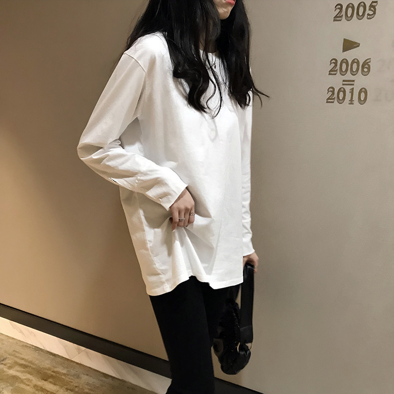 ゆったりとした純綿の長袖tシャツの女性は毛を磨いて厚い内にシャツの袖の底のシャツを掛けます。