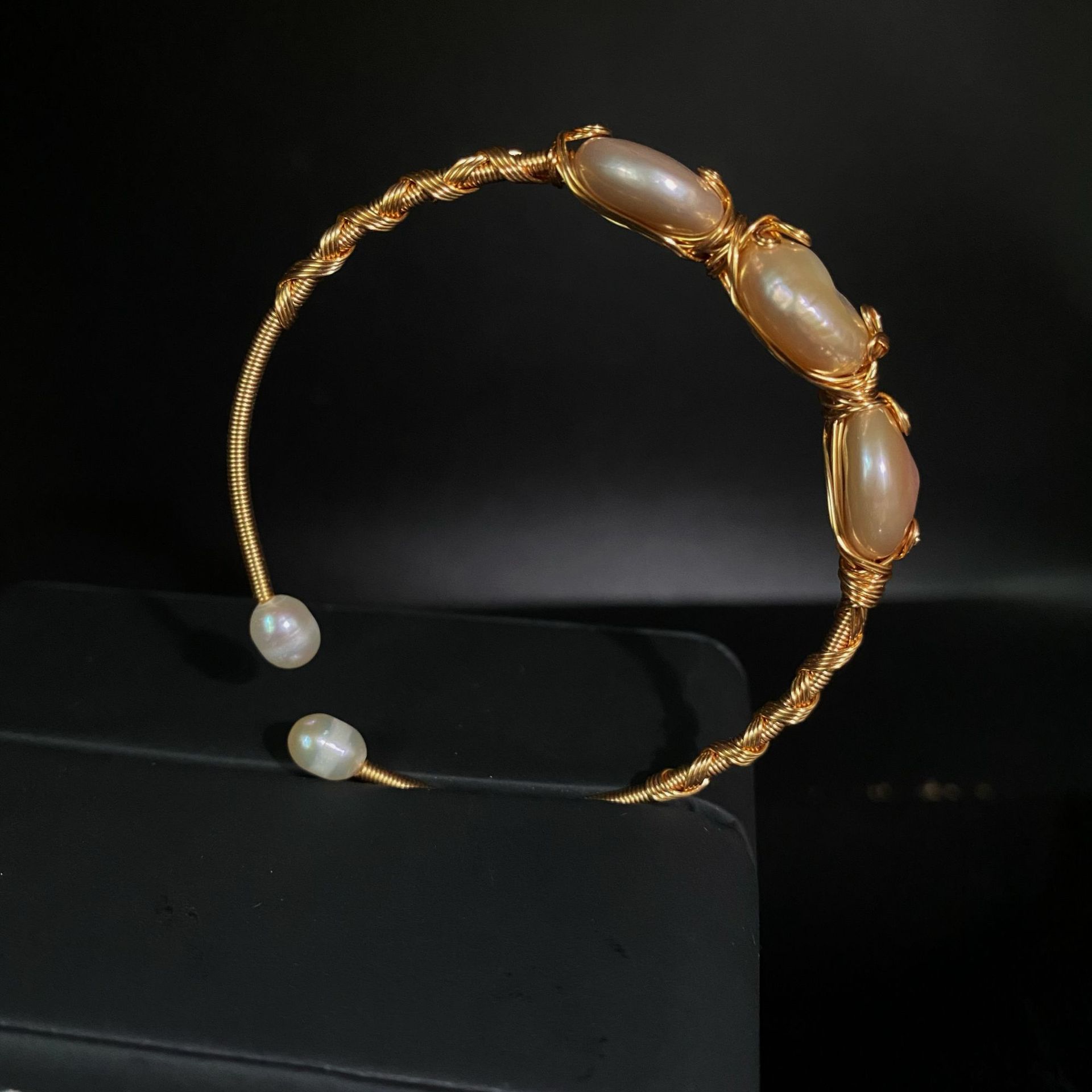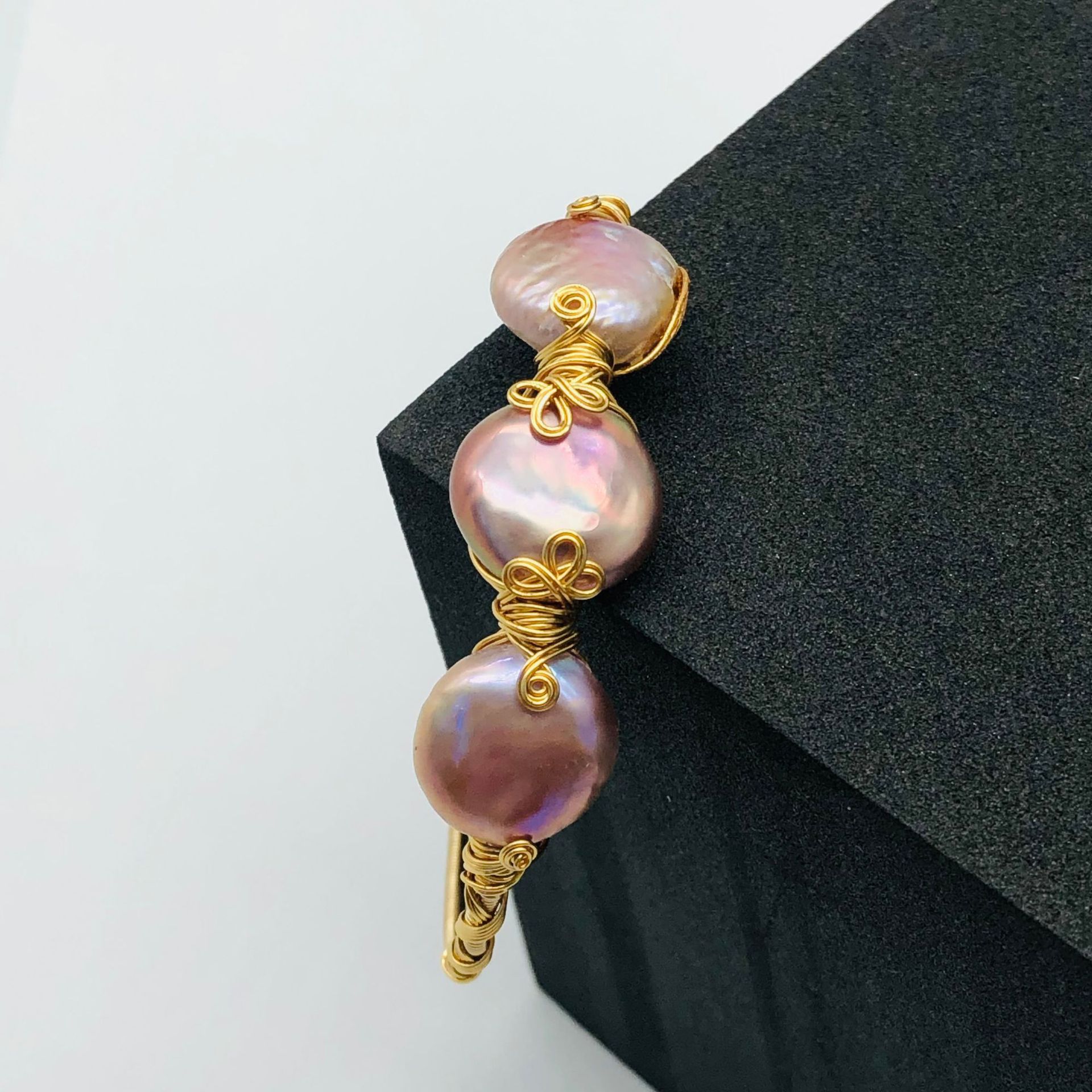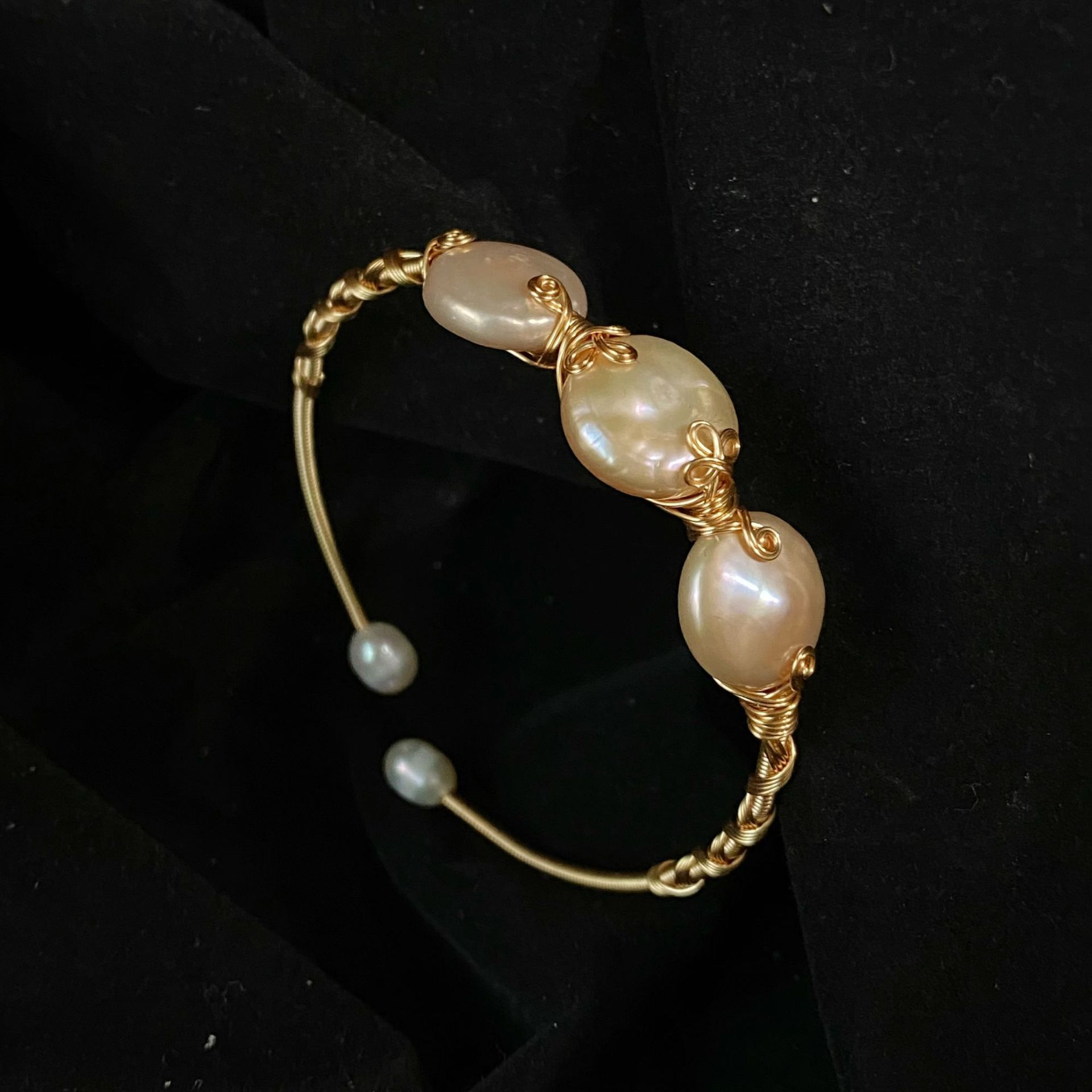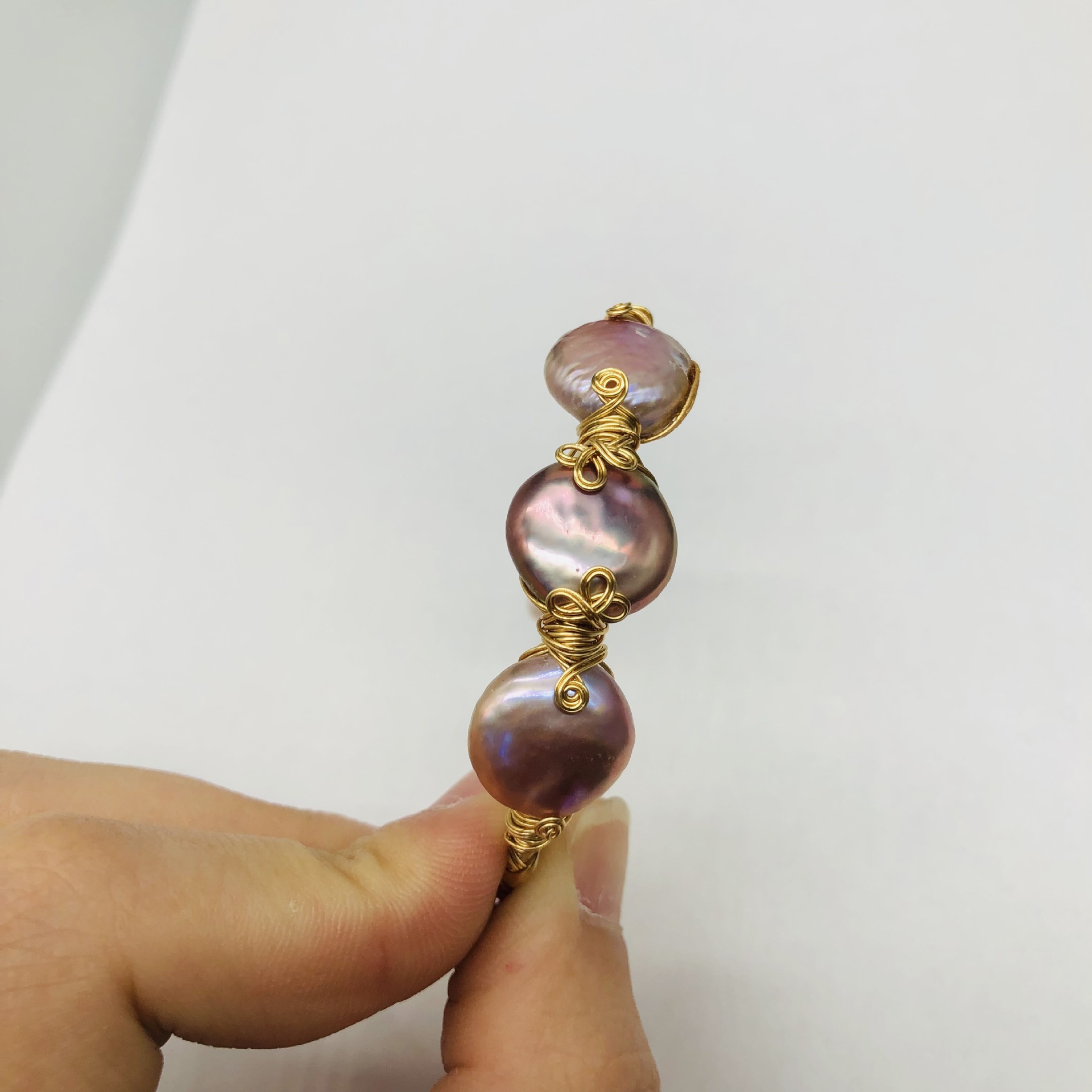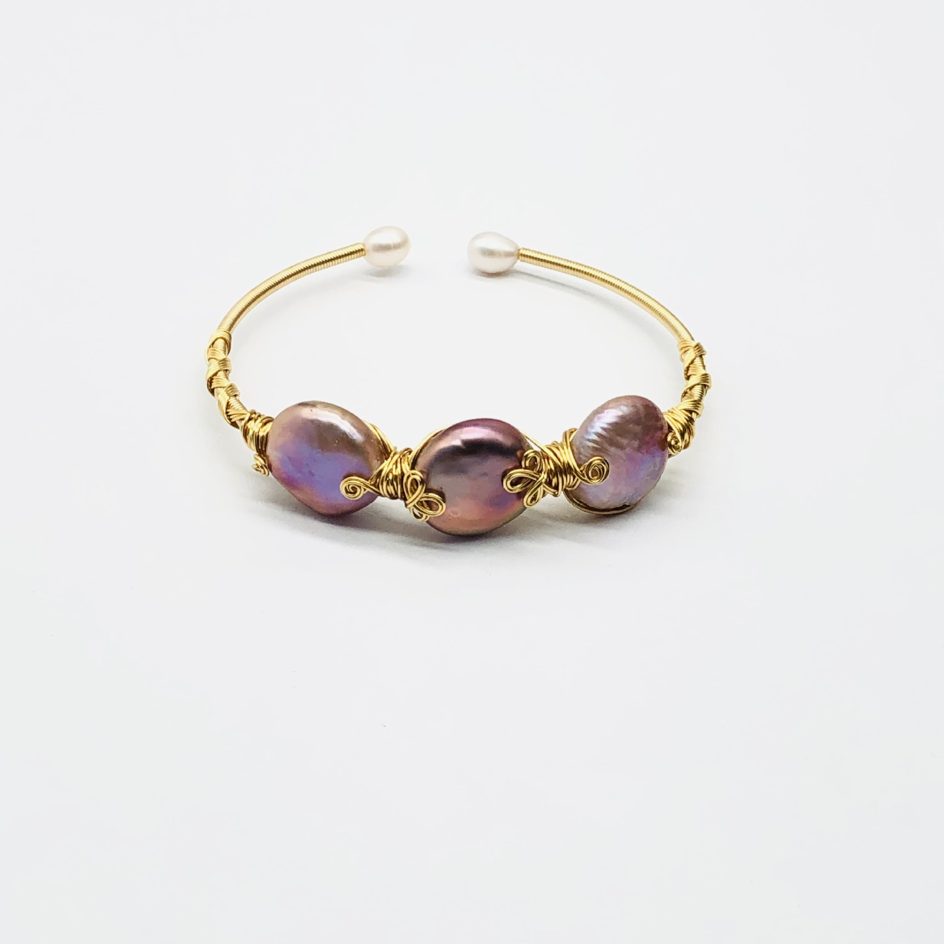 金糸白三珠,金糸紫三珠,ホワイトラインブレスレット,天然バロックパールブレスレット,歯のシェルのブレスレット
