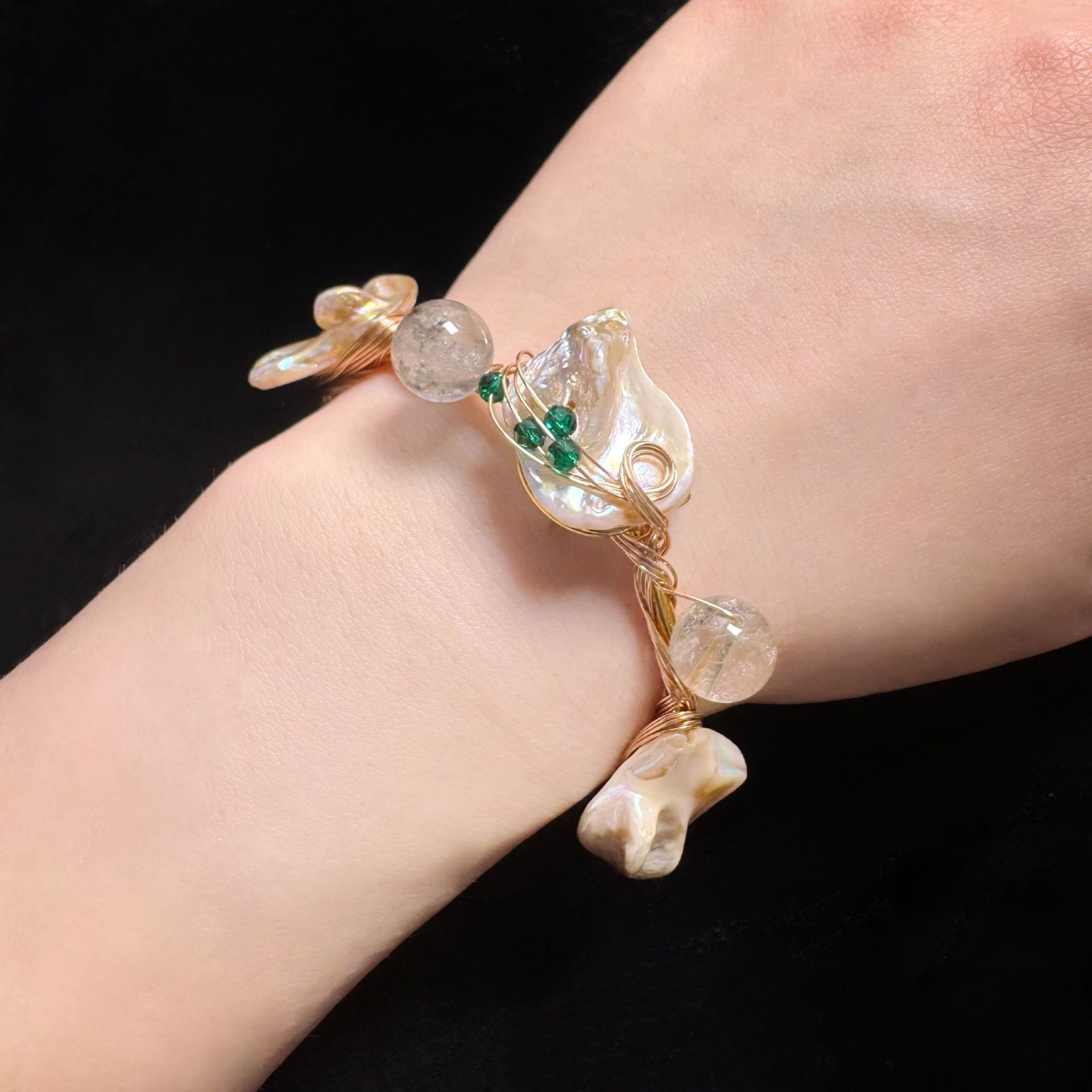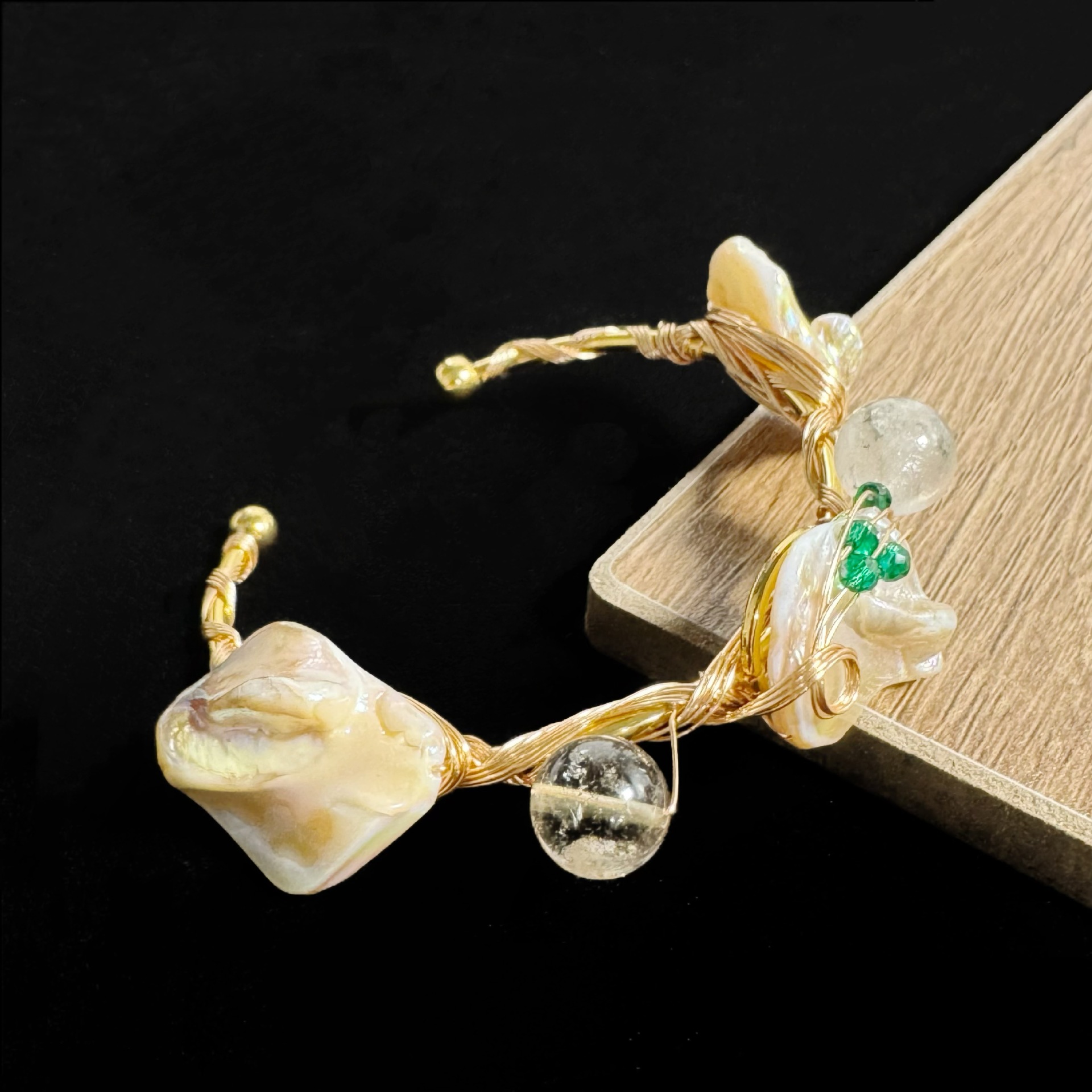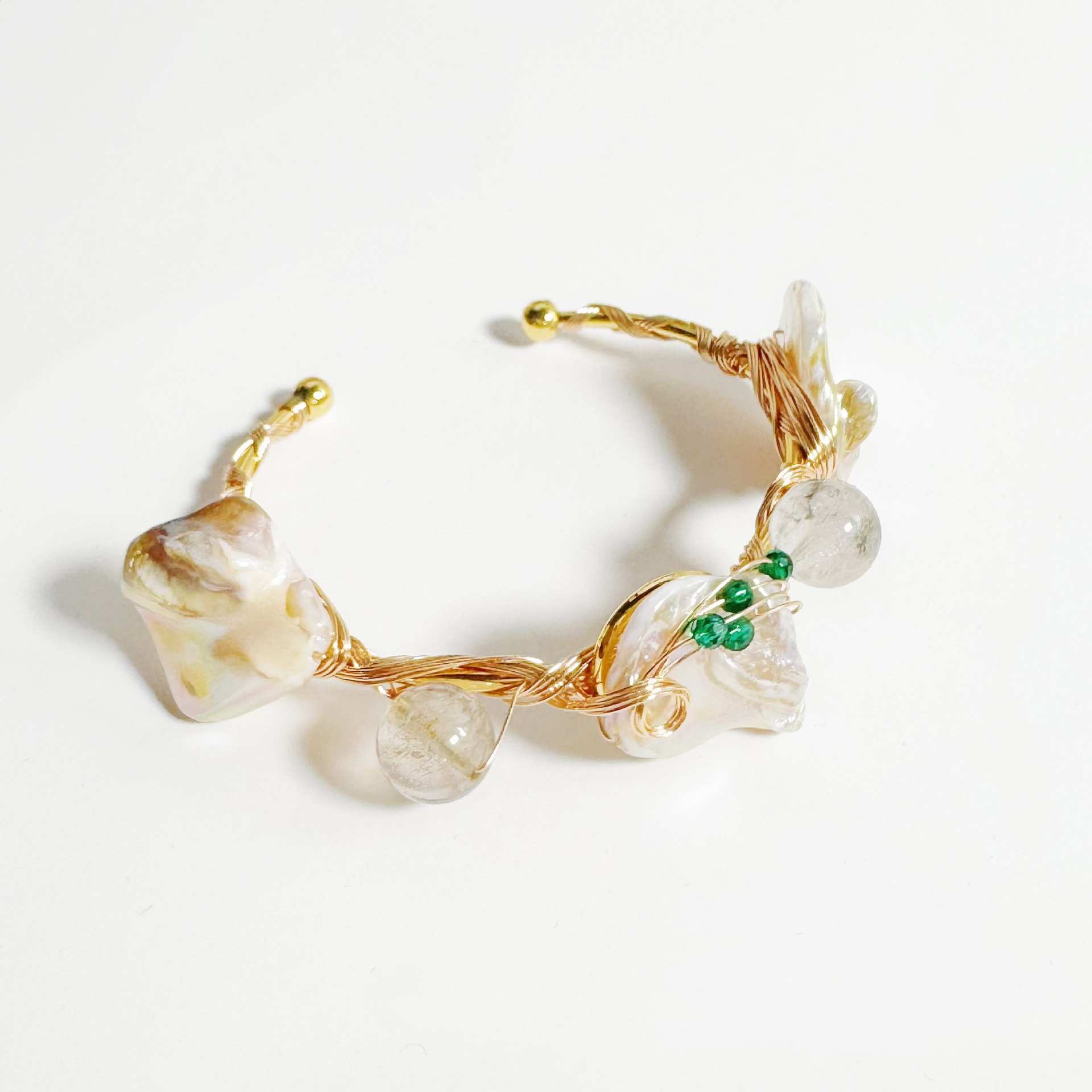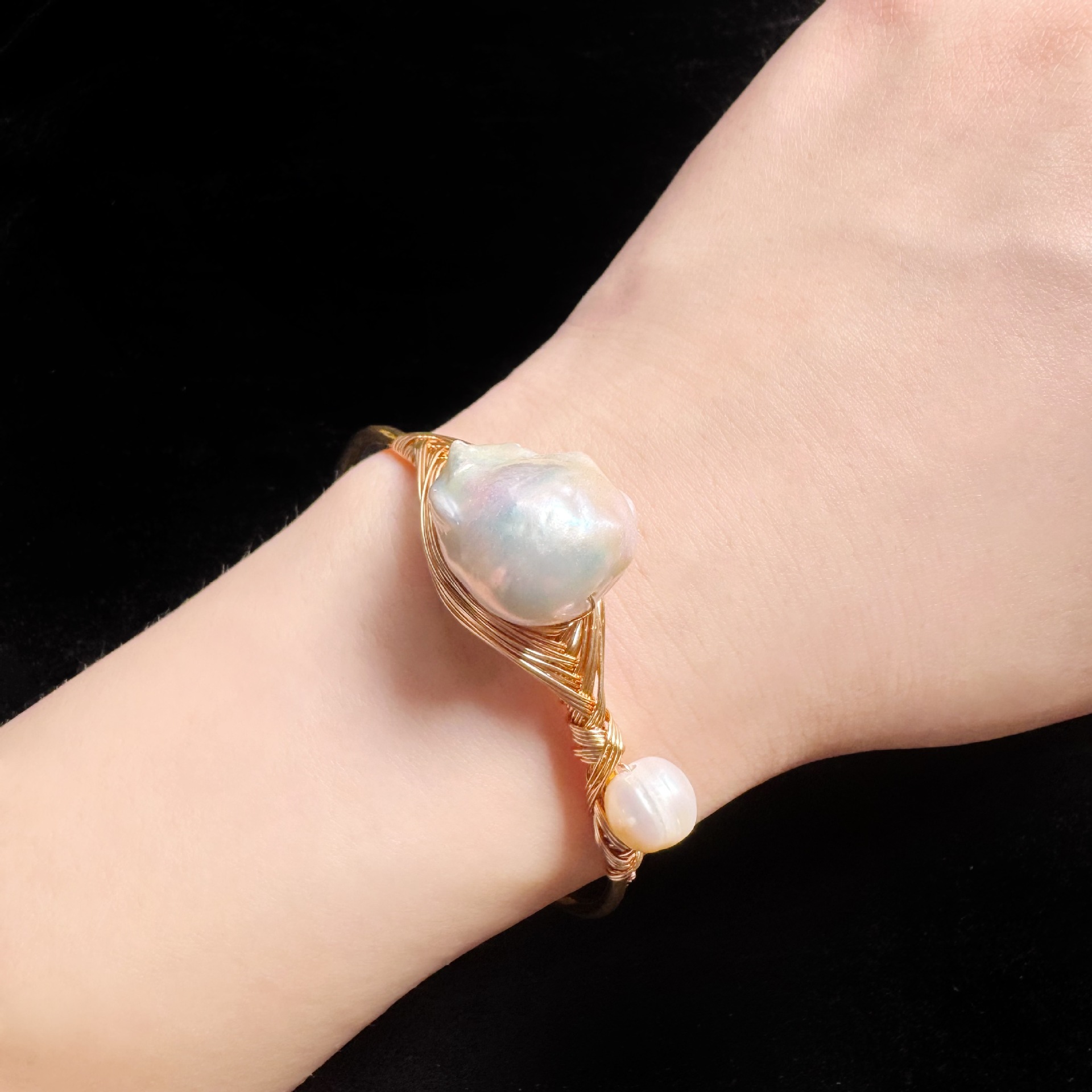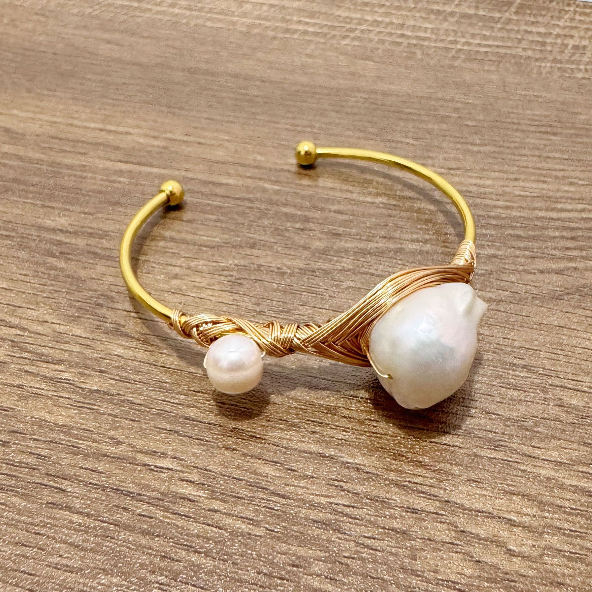 金糸白三珠,金糸紫三珠,ホワイトラインブレスレット,天然バロックパールブレスレット,歯のシェルのブレスレット
