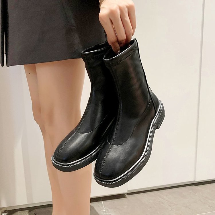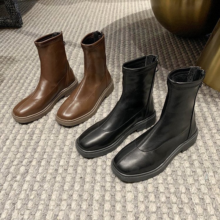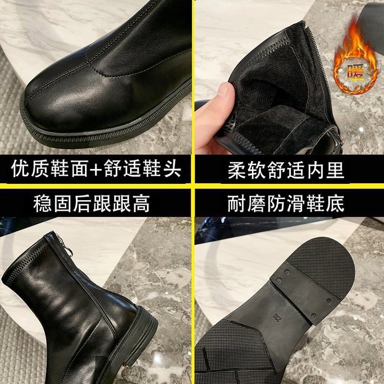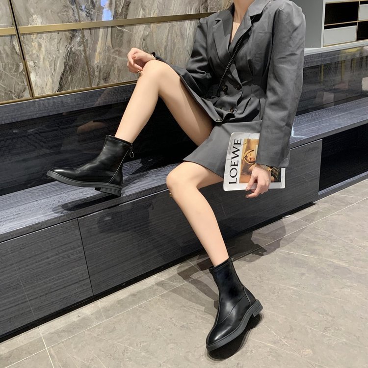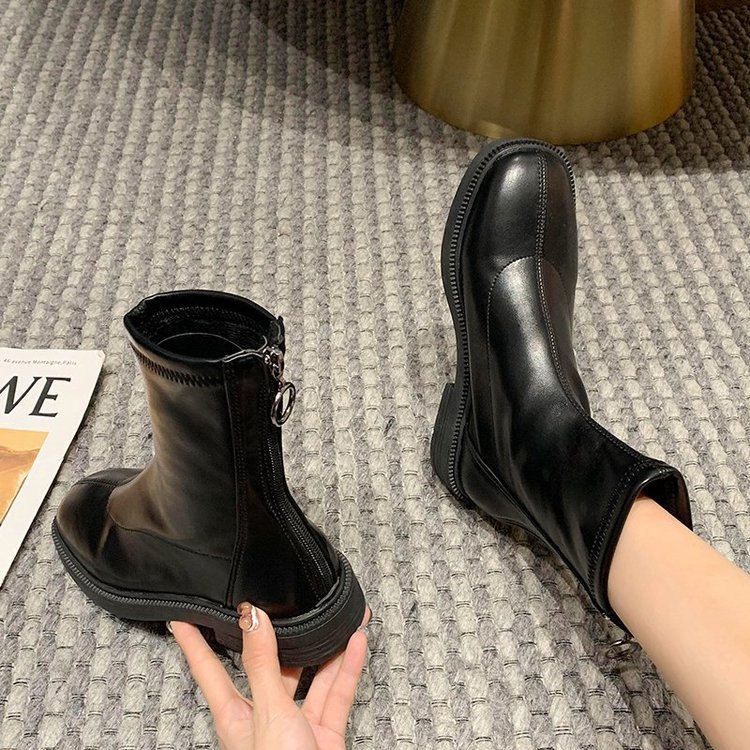 マーティンブーツ レディース ショートブーツ 2025 秋新作 フレンチラウンドトゥ バックジッパー チェルシー スリムブーツ ショートブーツ