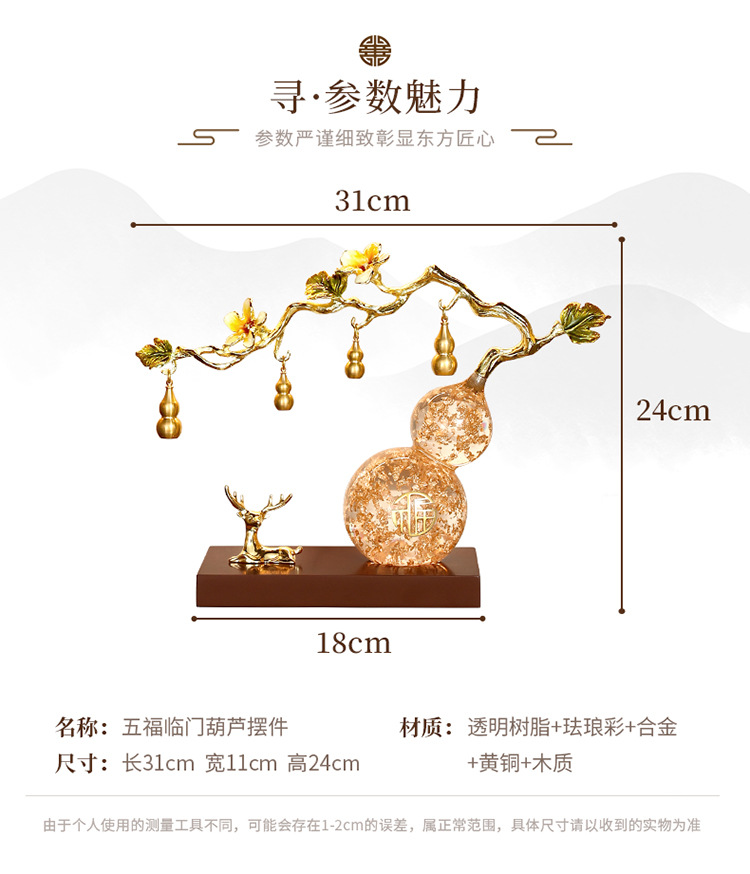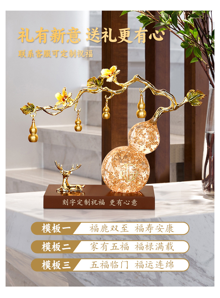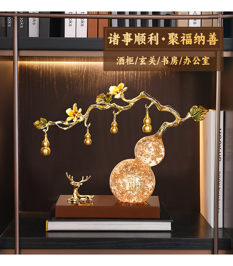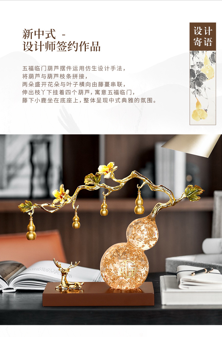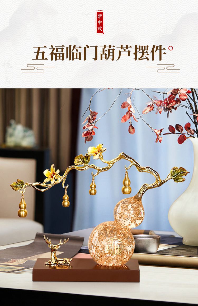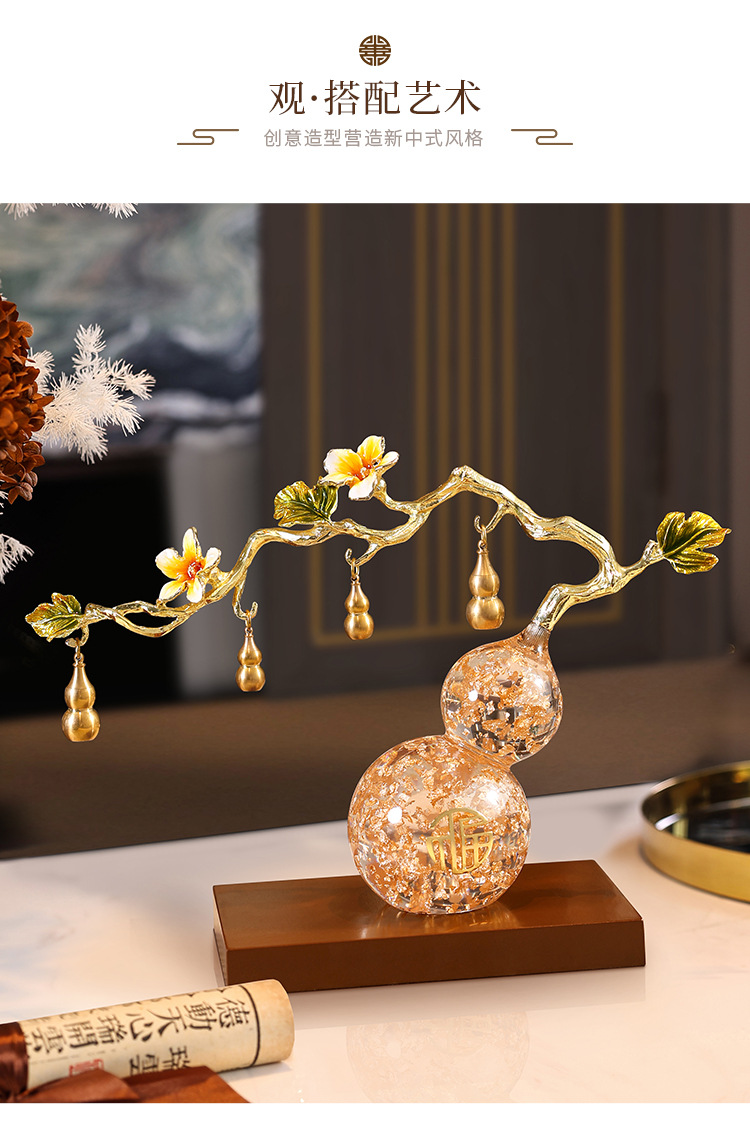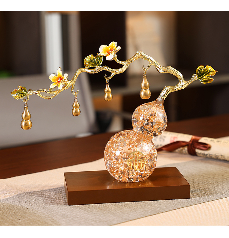 エナメル彩瑠璃玉瓢箪五福臨門風水玄関創意茶卓置物装飾事務室禅意