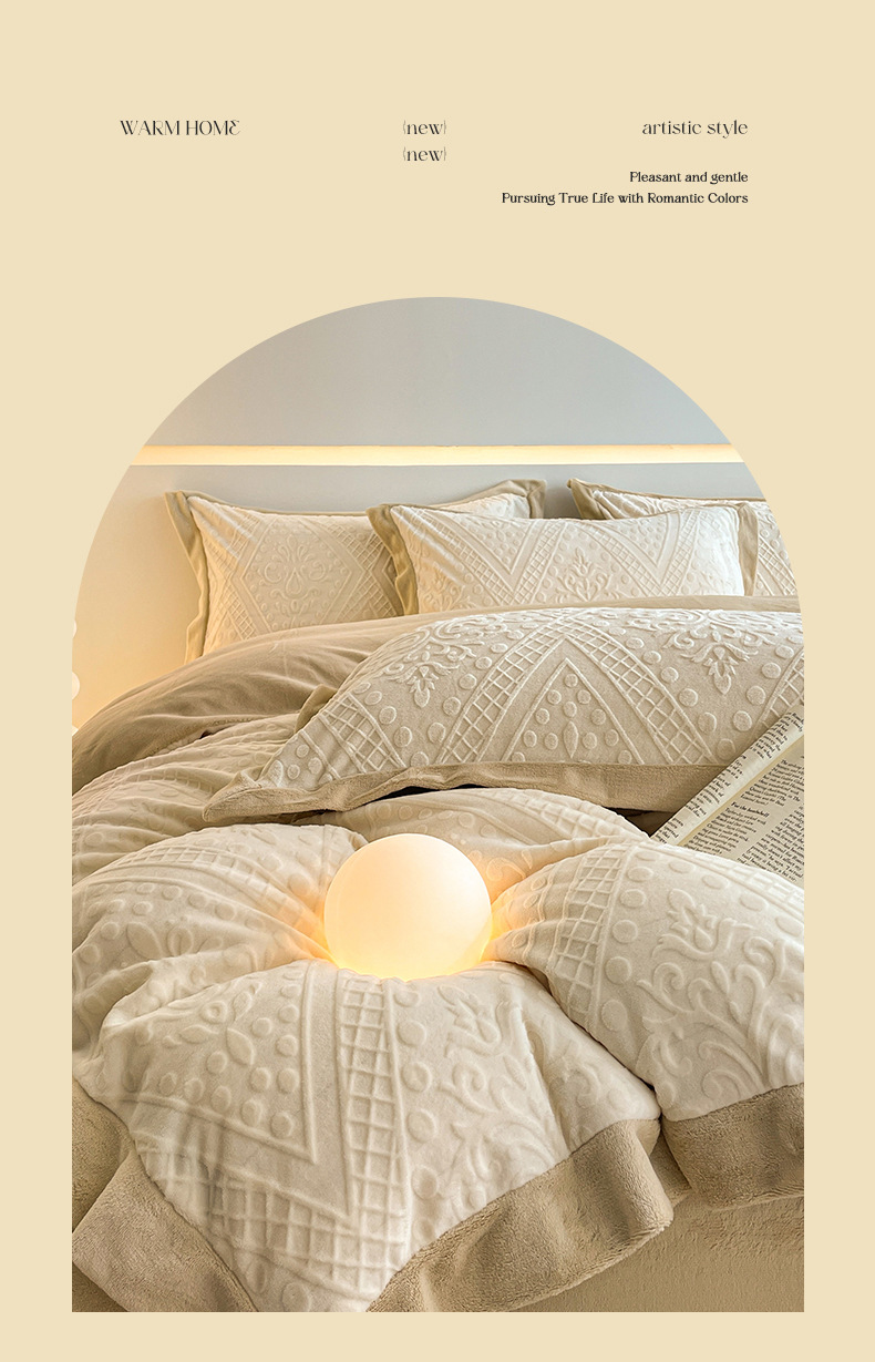生放送で起爆した秋の冬には、彫刻ミルクのベルベットを厚くしてベッド用品のシーツをカバーしてベッドカバーをカバーしている