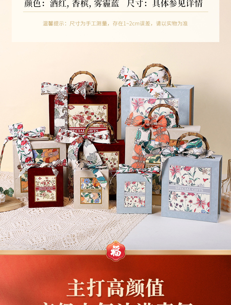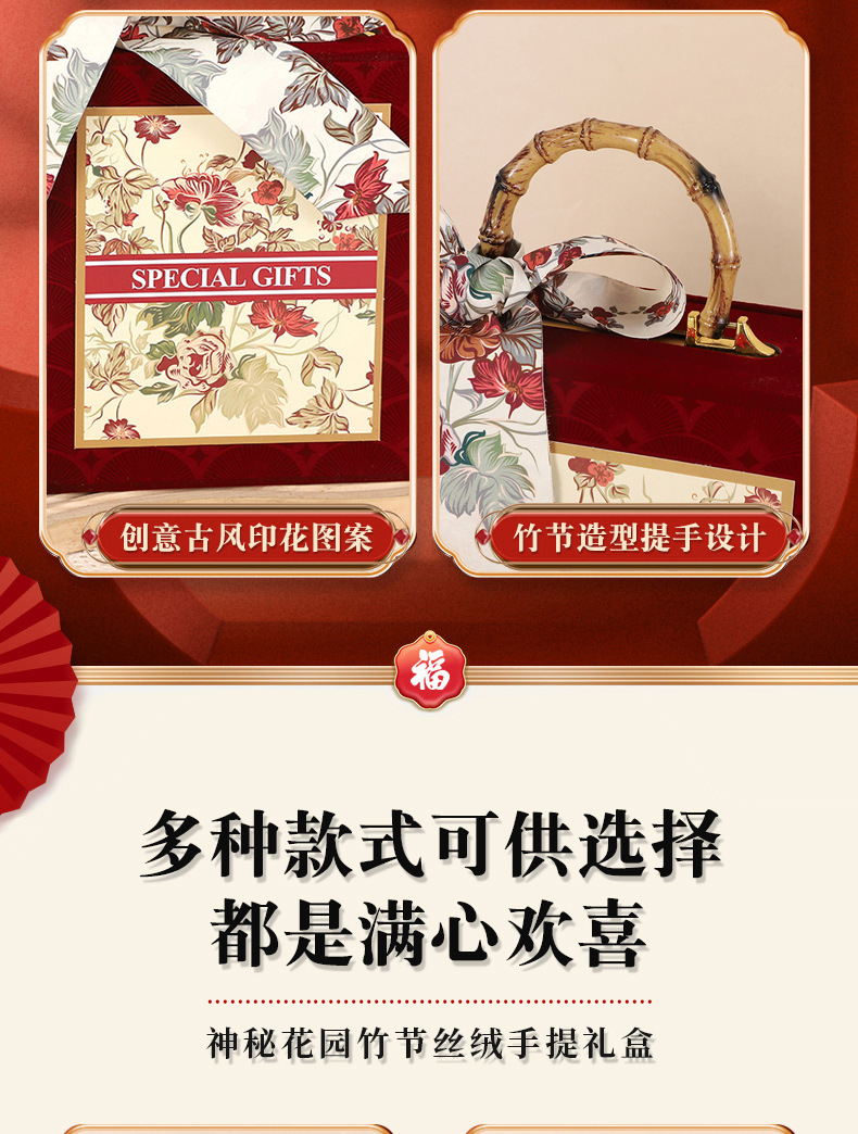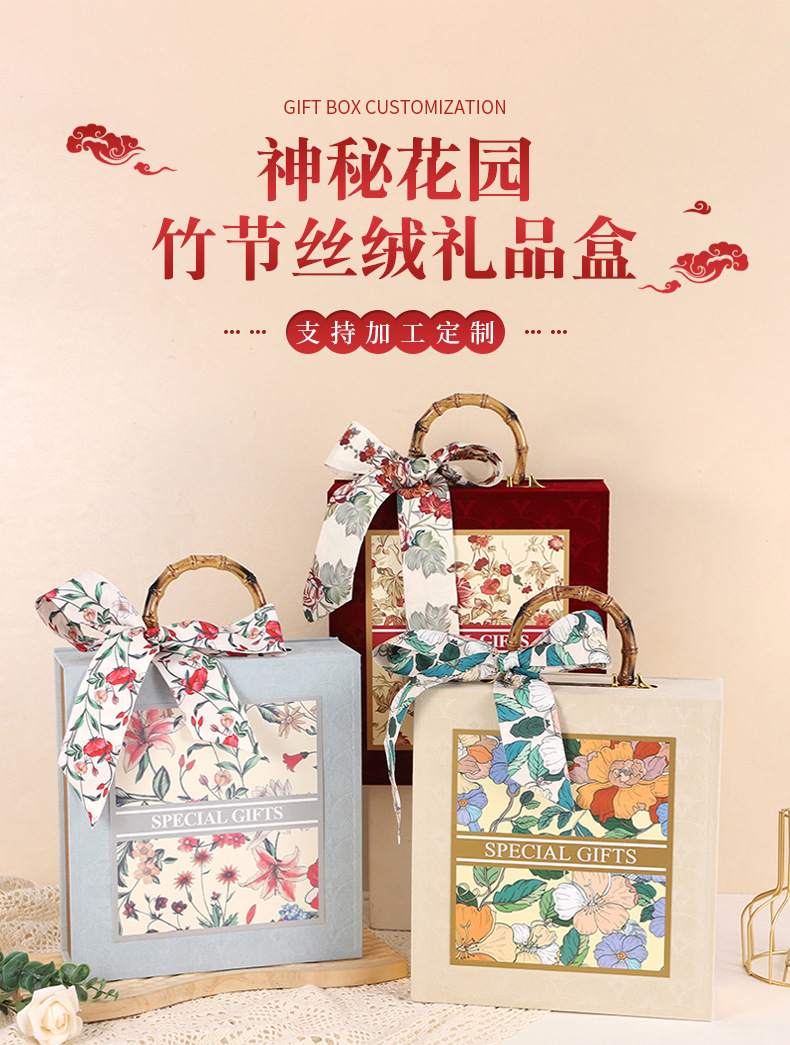 竹の日の手提げのベルベットのギフトボックスの神秘的な花園の手のギフトボックスの喜糖の箱の空の箱のギフトボックスの包装箱のギフトボックス