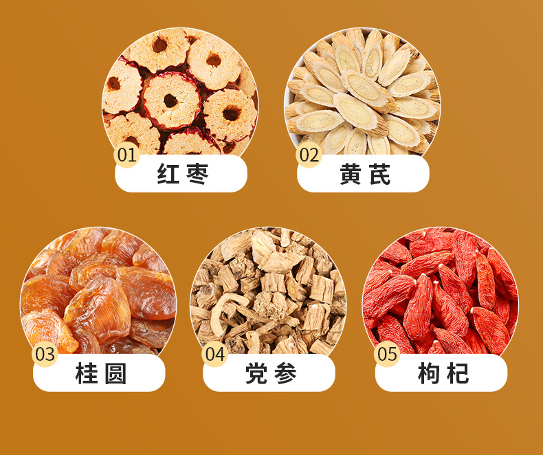 赤いナツメヤシ、レンゲ、リュウガン、コドノプシス、クコ