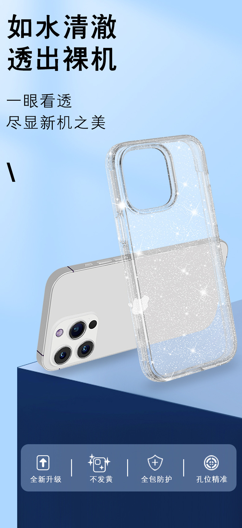 Apple 17 Pro Max用キラキラ透明スマホケース、16 Terminator対応、厚型13ハードケース、12/15保護カバー