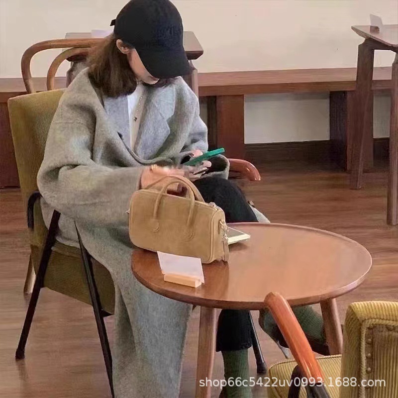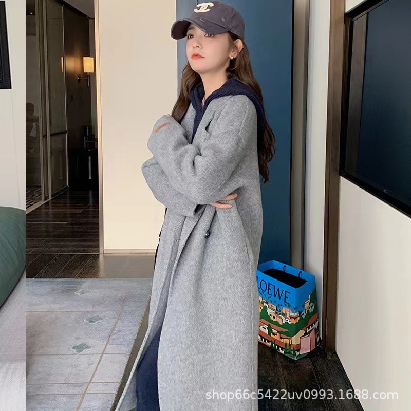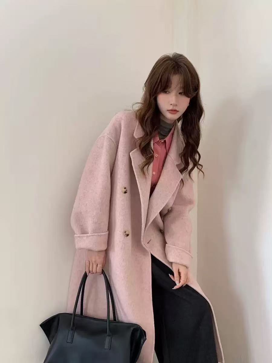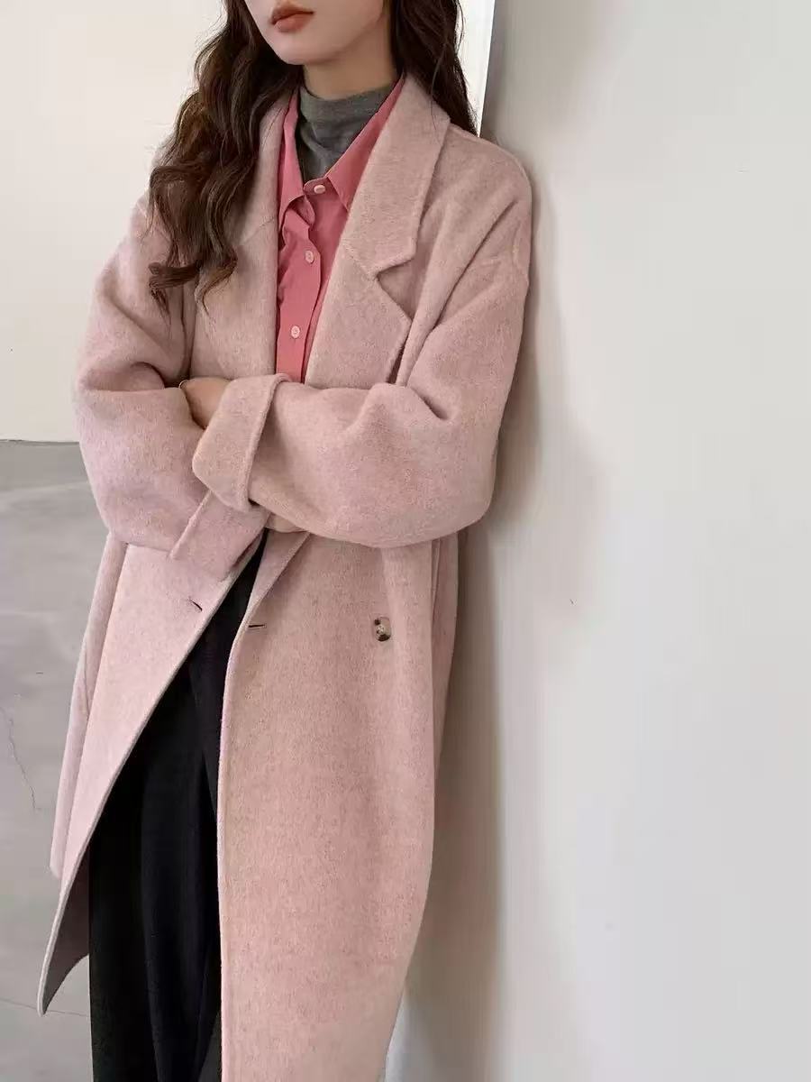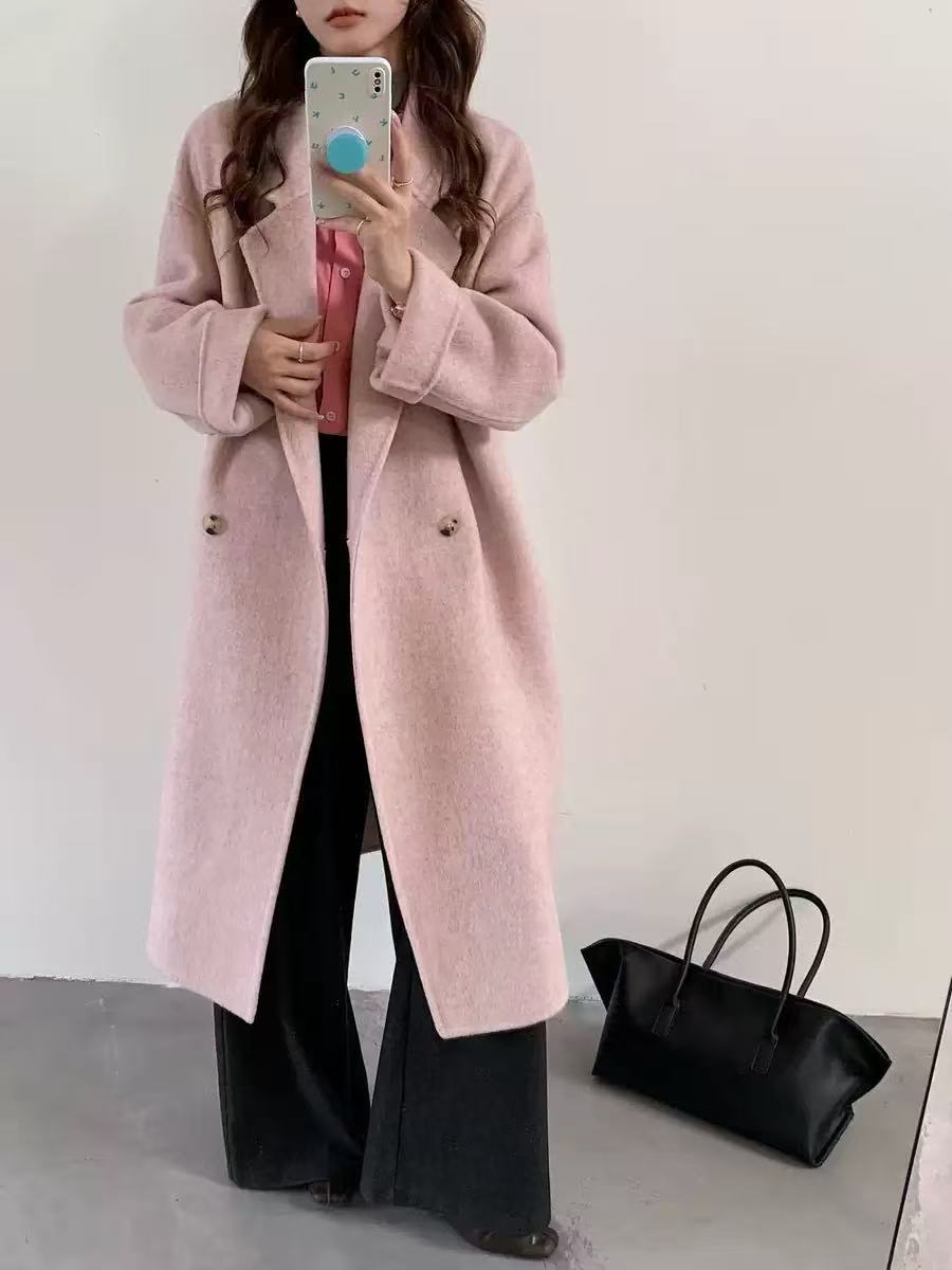 【背の高いベビーキャメルヘア】韓国通勤両面ウールコート ダブルブレスト シンプル 高級ウールコート レディース