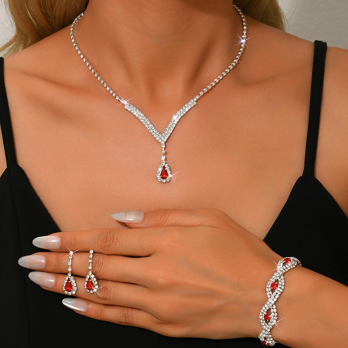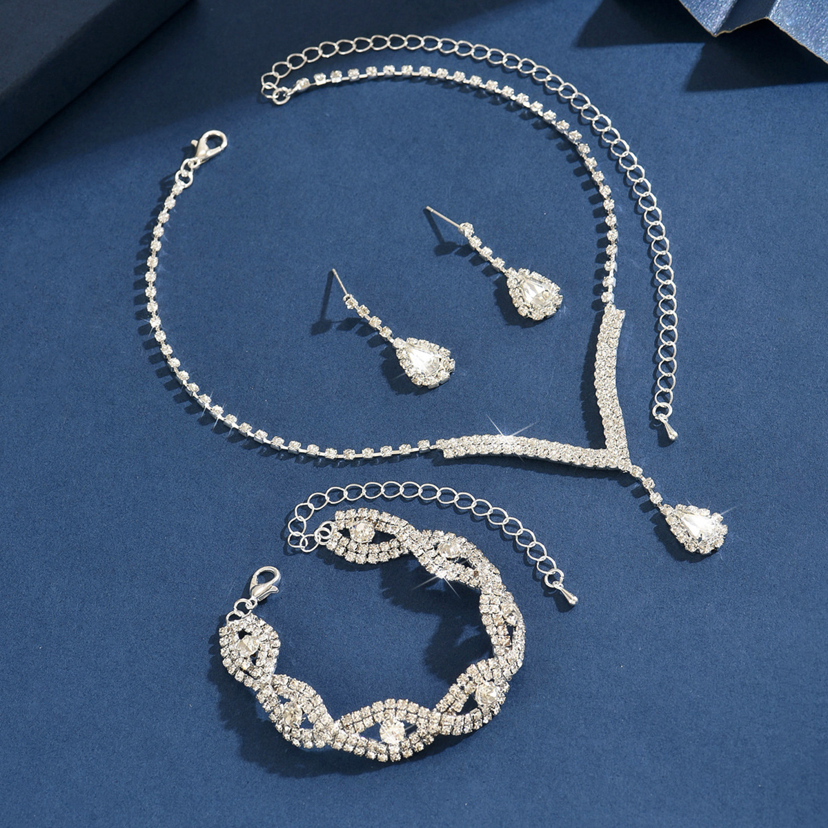 ヨーロッパとアメリカの電子商取引クロスボーダー花嫁ウェディングアクセサリーネックレスブレスレットイヤリングセットチェーン女性の 3 ピースラインストーンウェディングドレスアクセサリー