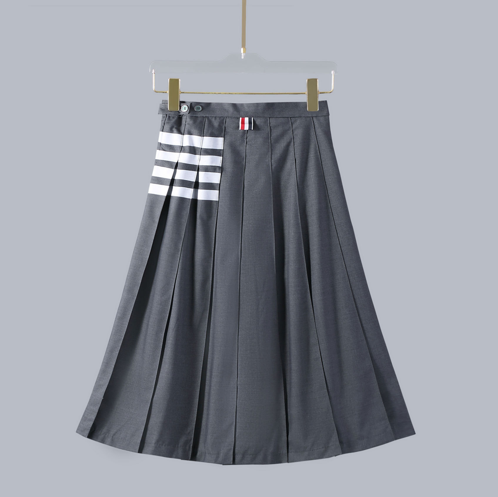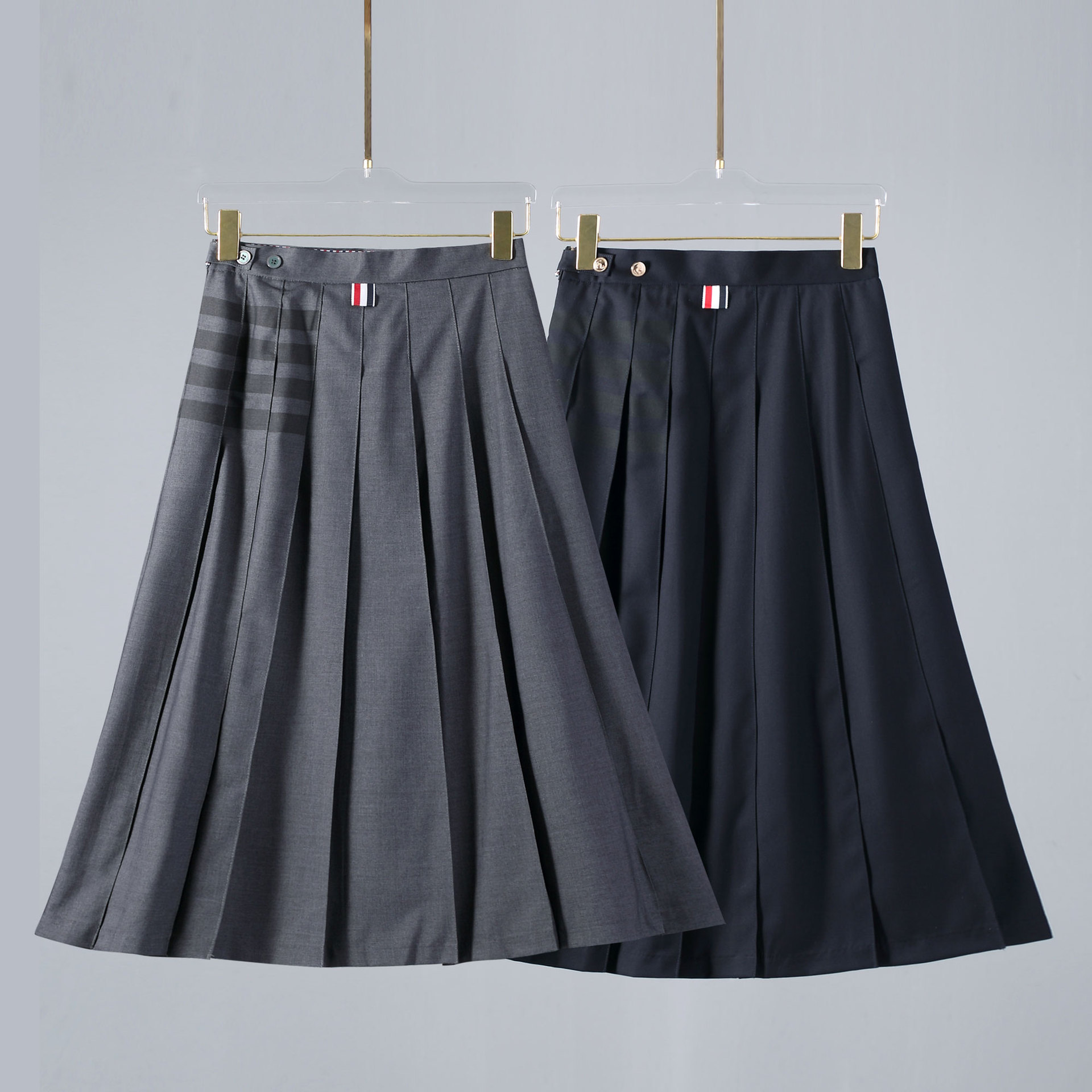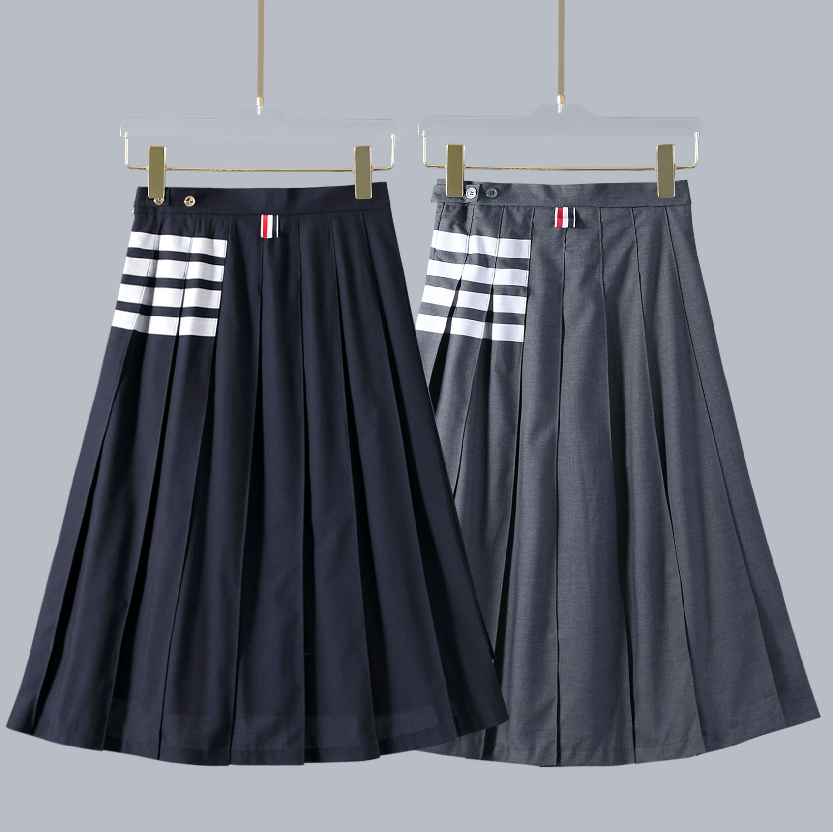 スポットTB JLプリーツスカート ハイウエスト 痩身 4本ストライプ アシンメトリーロングスカート Aライン 万能四季ハーフレングススカート レディース